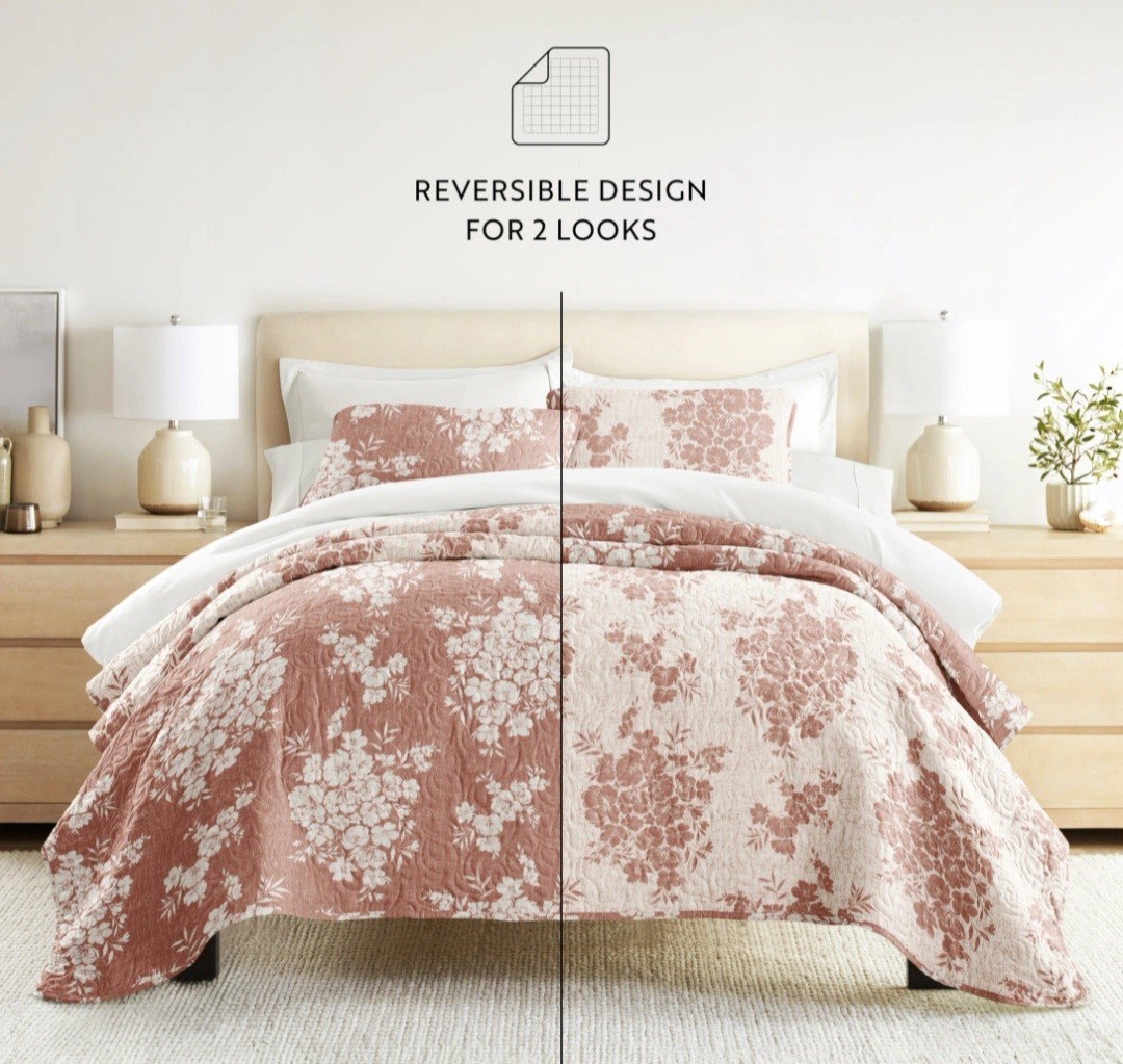 ienjoy Distressed Bouquet Reversible KING Quilt Set Bedspread - Kaycie Gray