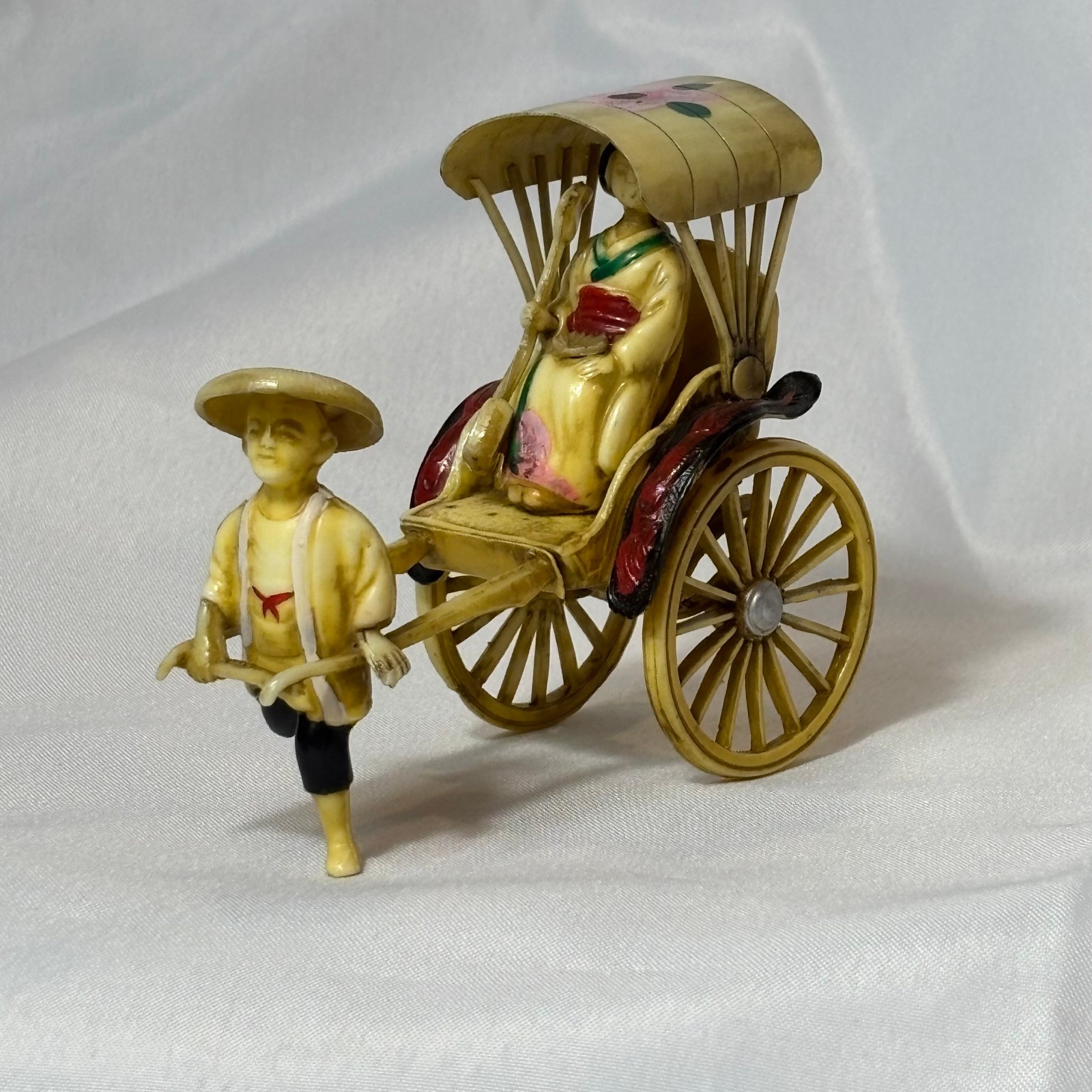 Vtg Celluloid Rickshaw Toy Pulled Geisha Holding A Shamisen Made In Japan Figure