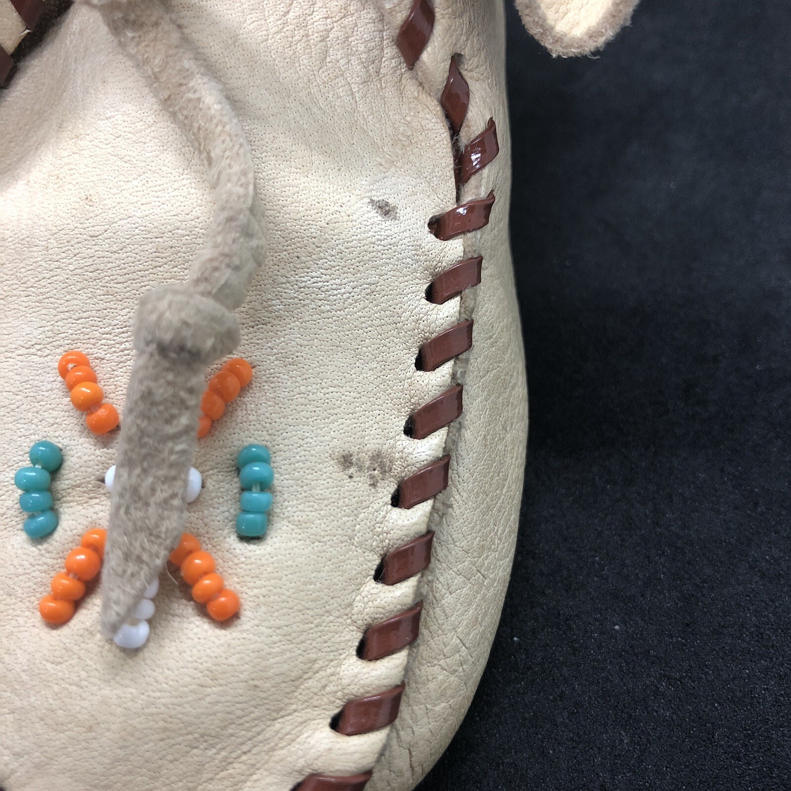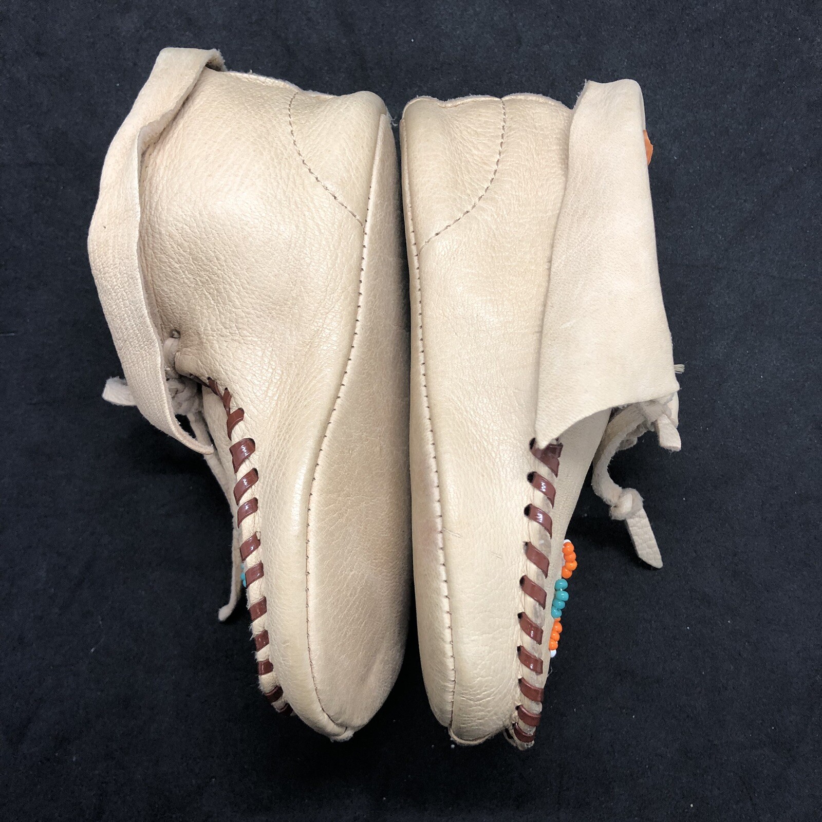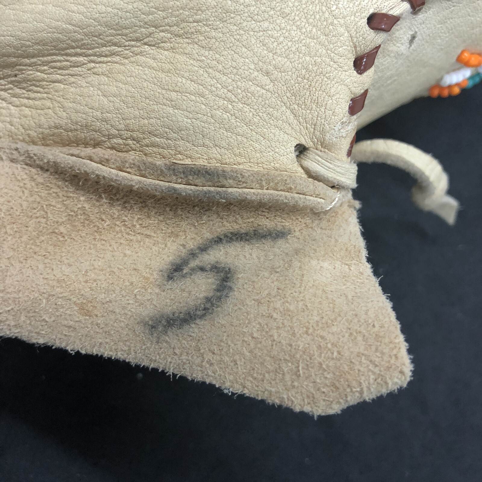 Vintage Child's Toddler Deerskin Doeskin Leather Beaded Moccasins Shoes Marked 5
