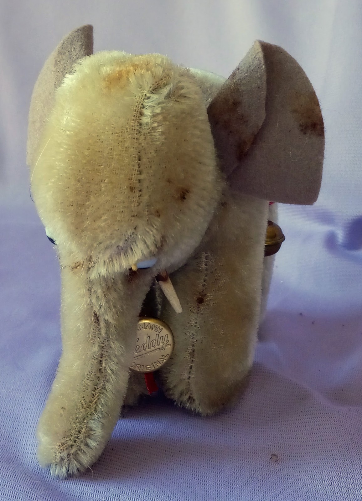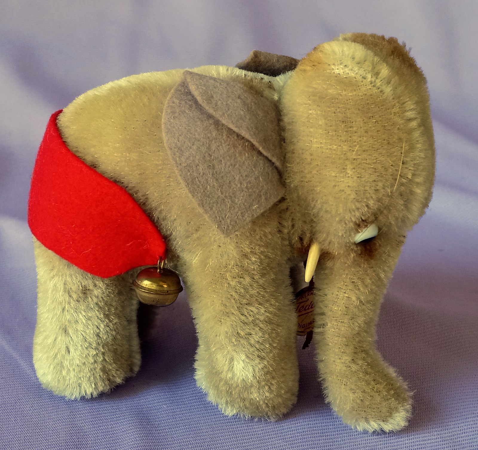 как выглядит Antique Rare Early Hermann Elephant Plush Germany Mini Tag Bell Medalion 4" фото