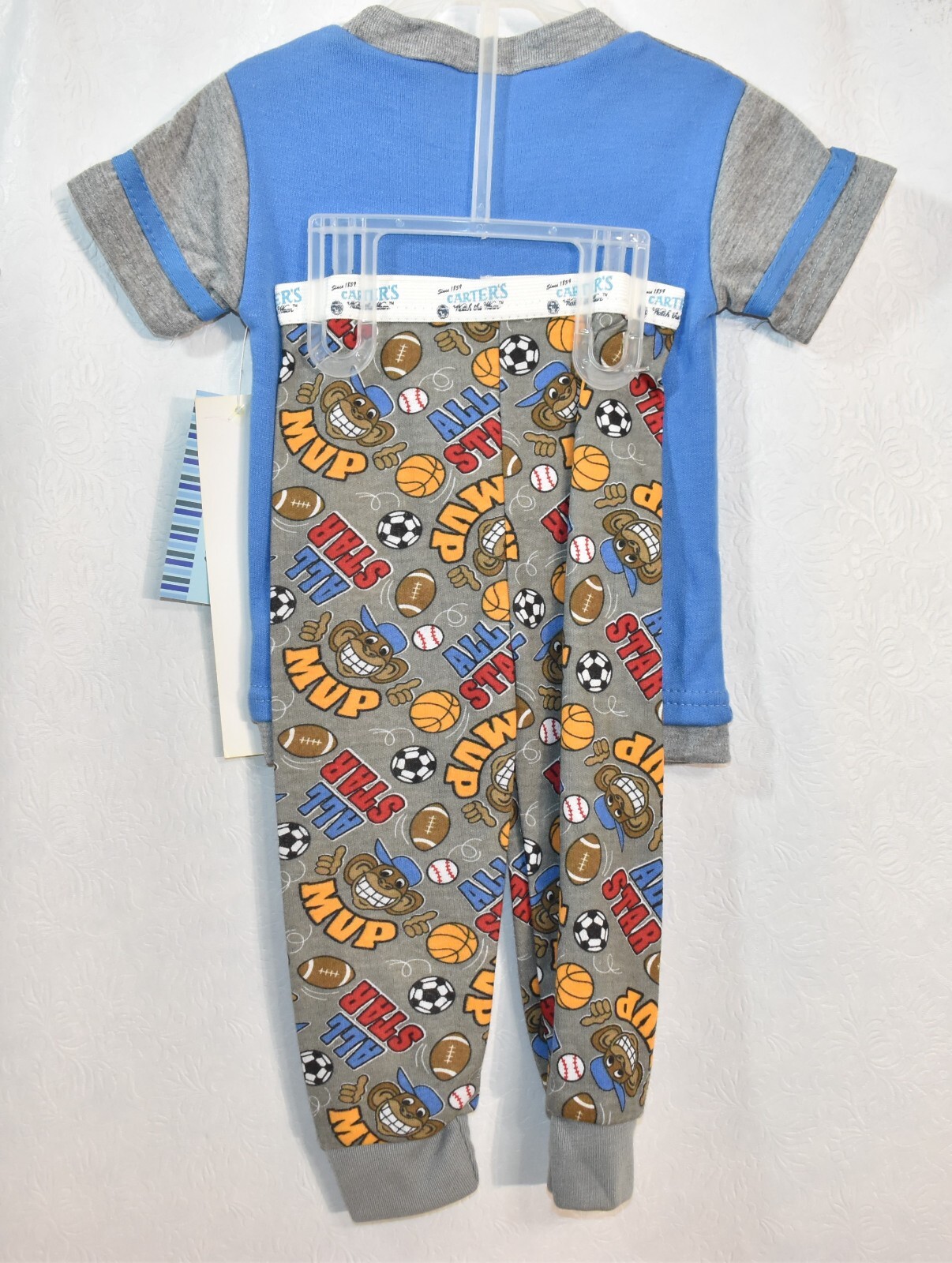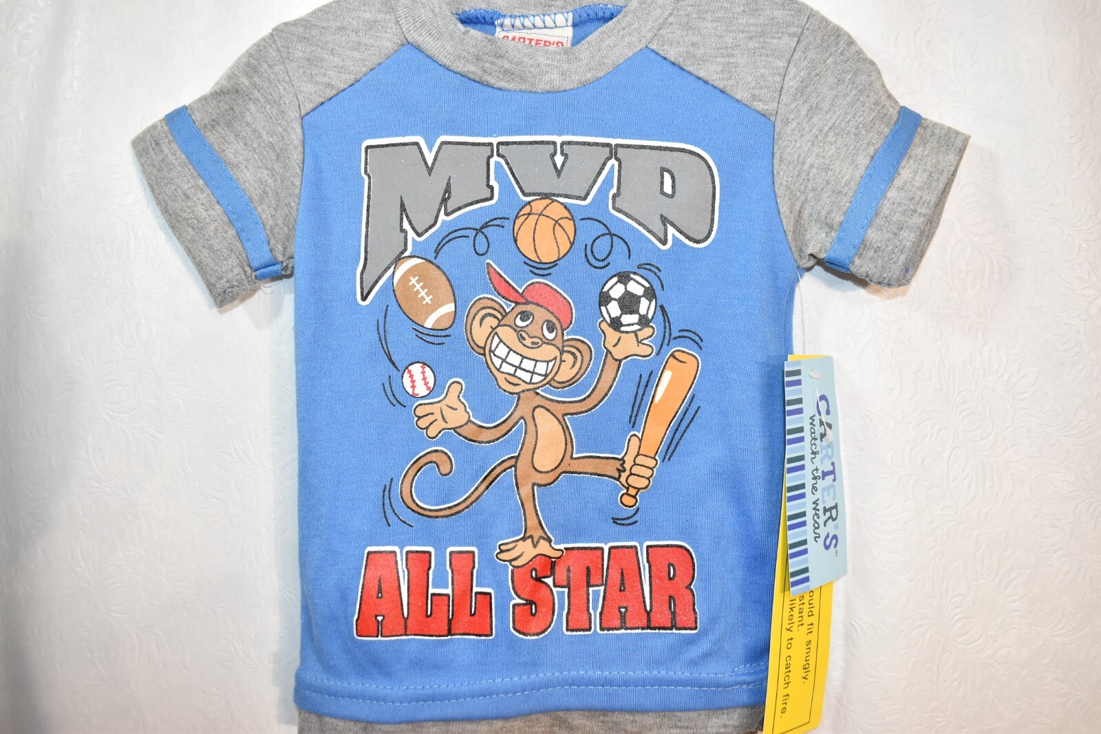 Vintage Carter's 2-Piece Pajamas Monkey MVP All Star Size 12 Months New