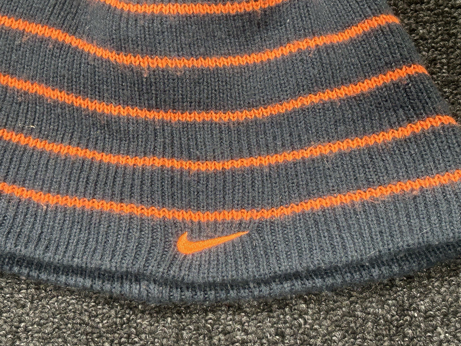как выглядит VINTAGE Nike Beanie Hat Cap Gray Orange Striped Youth Kids Boys Swoosh фото