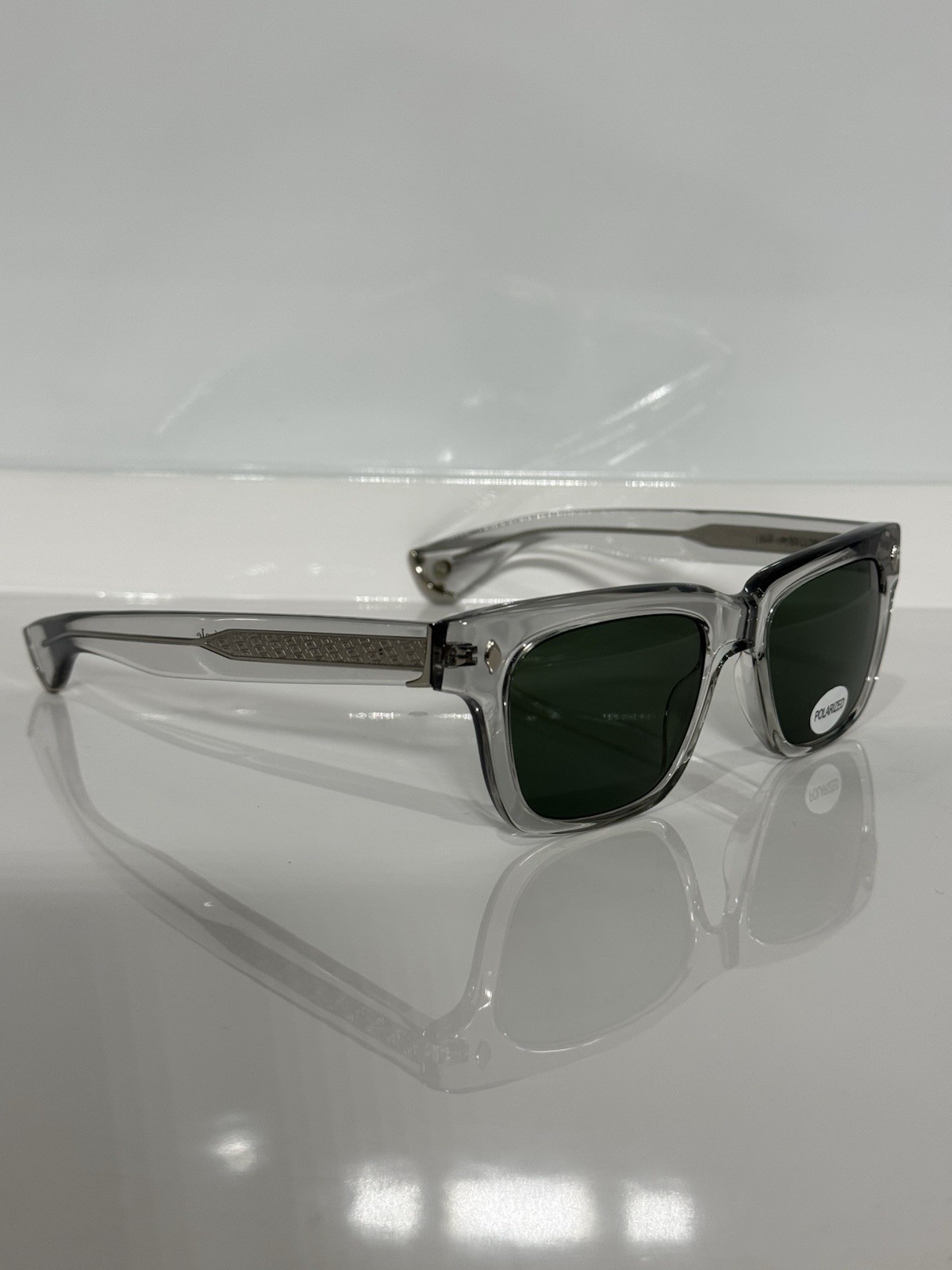 Garrett Leight Chunky Crystal Gray Acetate Custom Polarized G15 Green Sunglasses