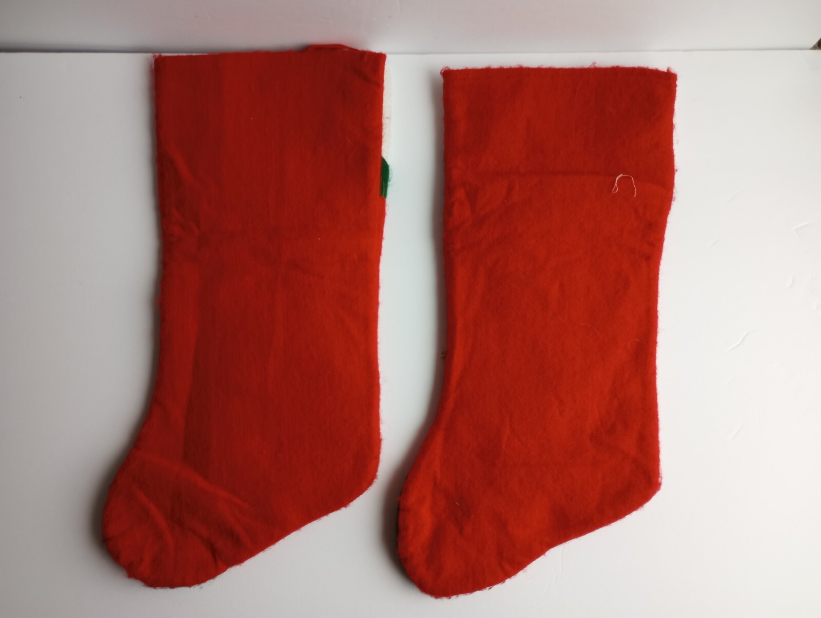 Vintage Felt Christmas Stockings Santa Snowman 17 Embroidered 3D - Set of 2