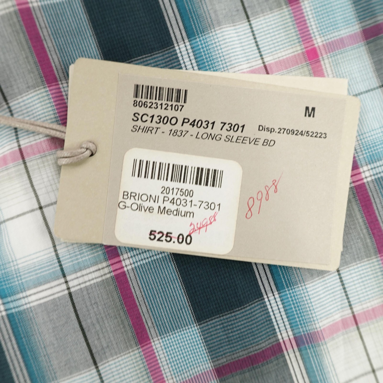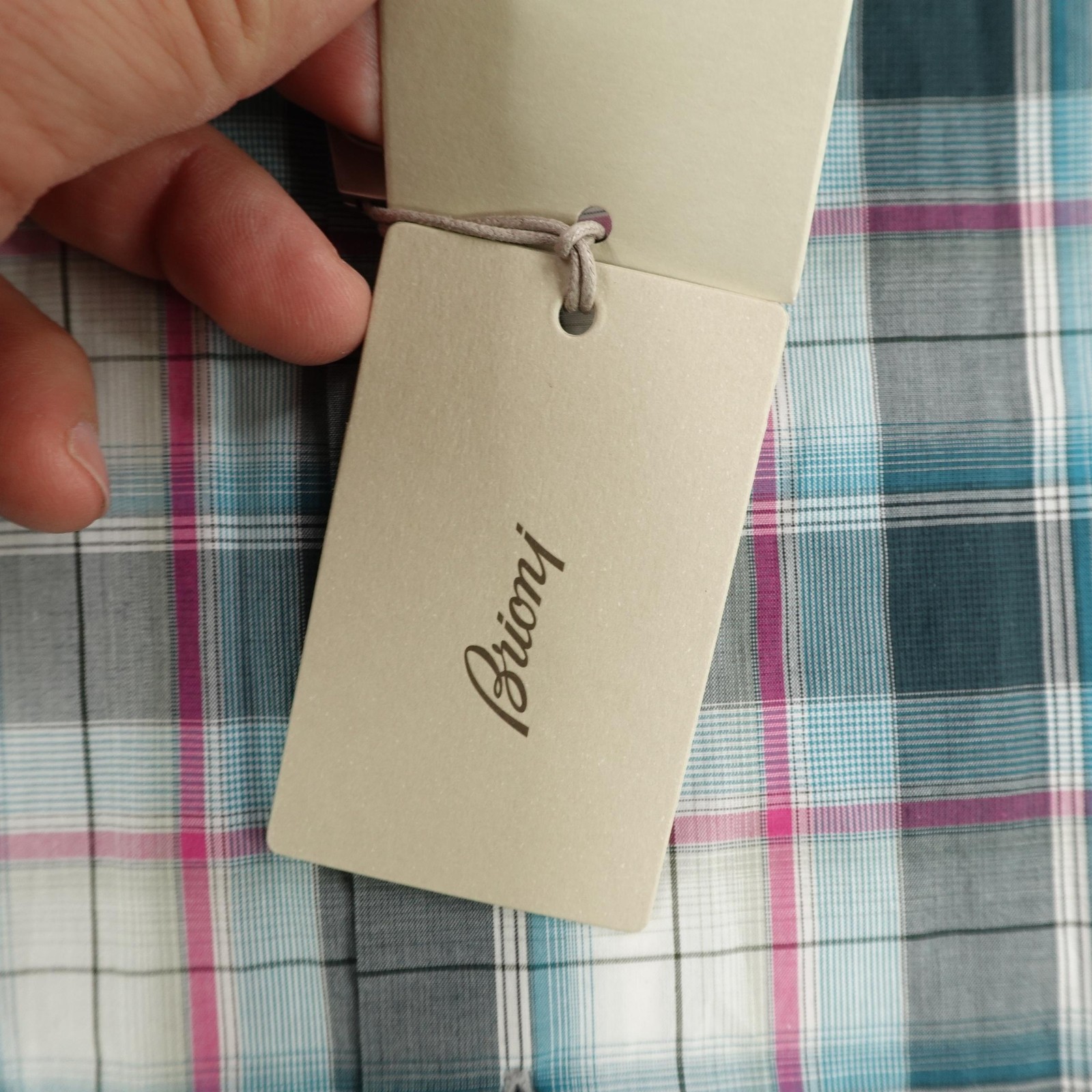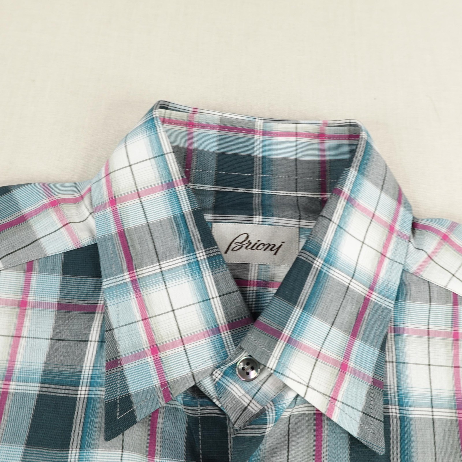 как выглядит Brioni Shirt Mens Medium Plaid Blue Pink Plaid Button Down Made In Italy NEW фото