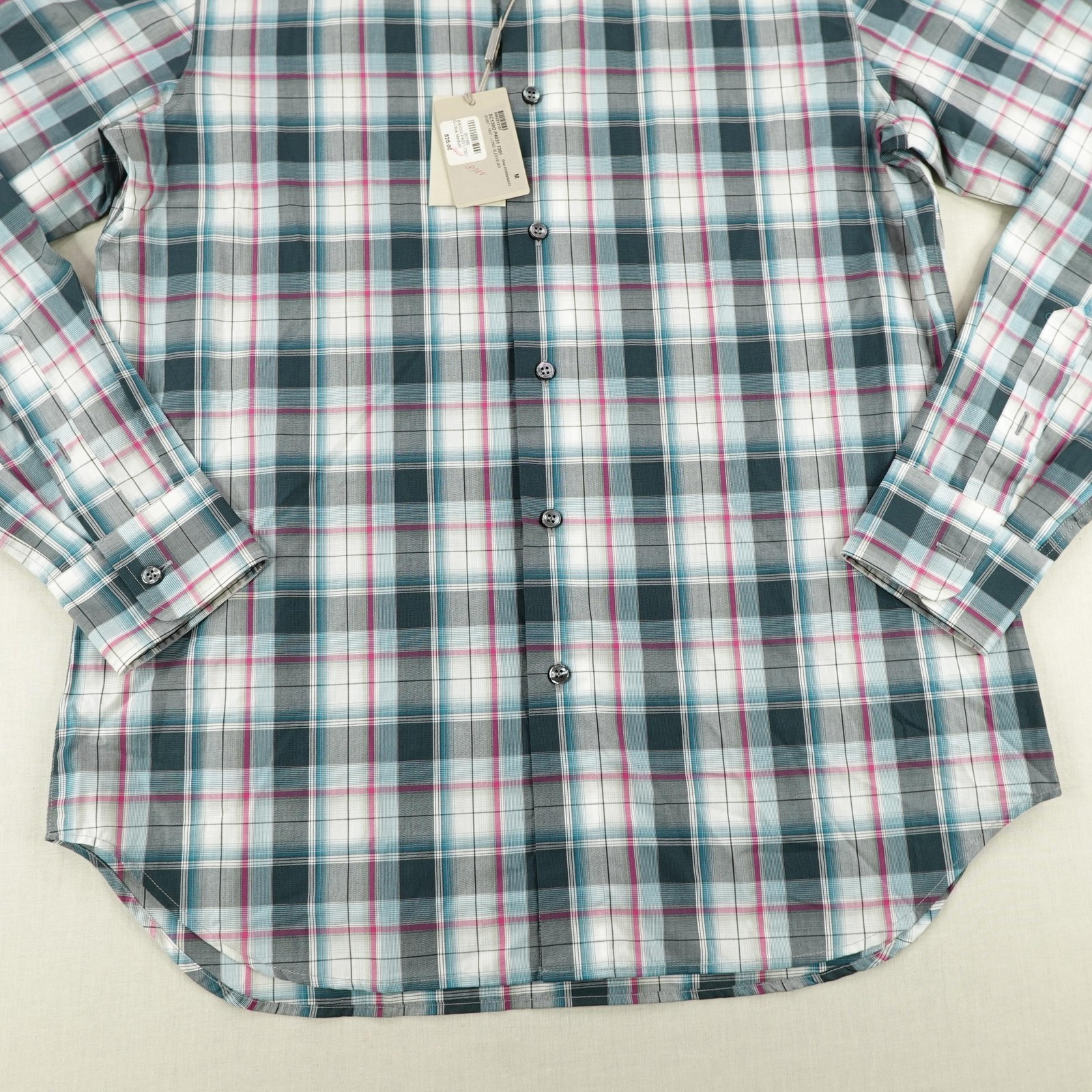 Brioni Shirt Mens Medium Plaid Blue Pink Plaid Button Down Made In Italy NEW