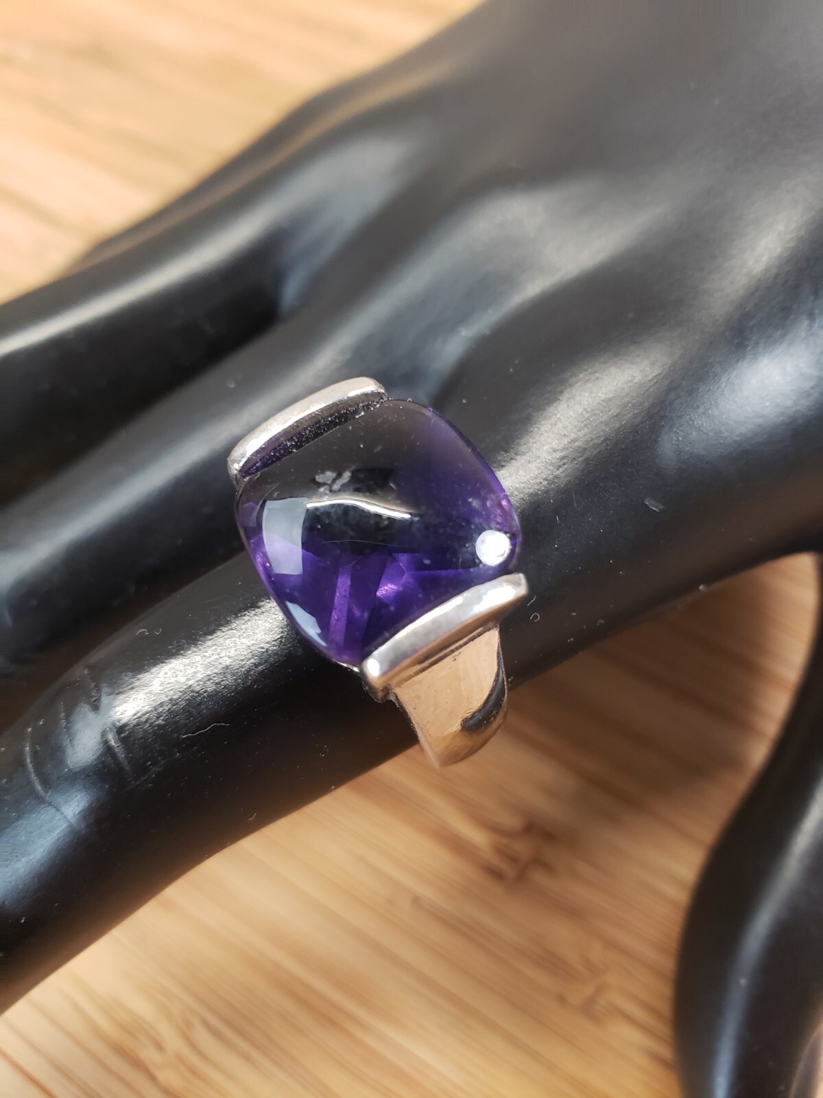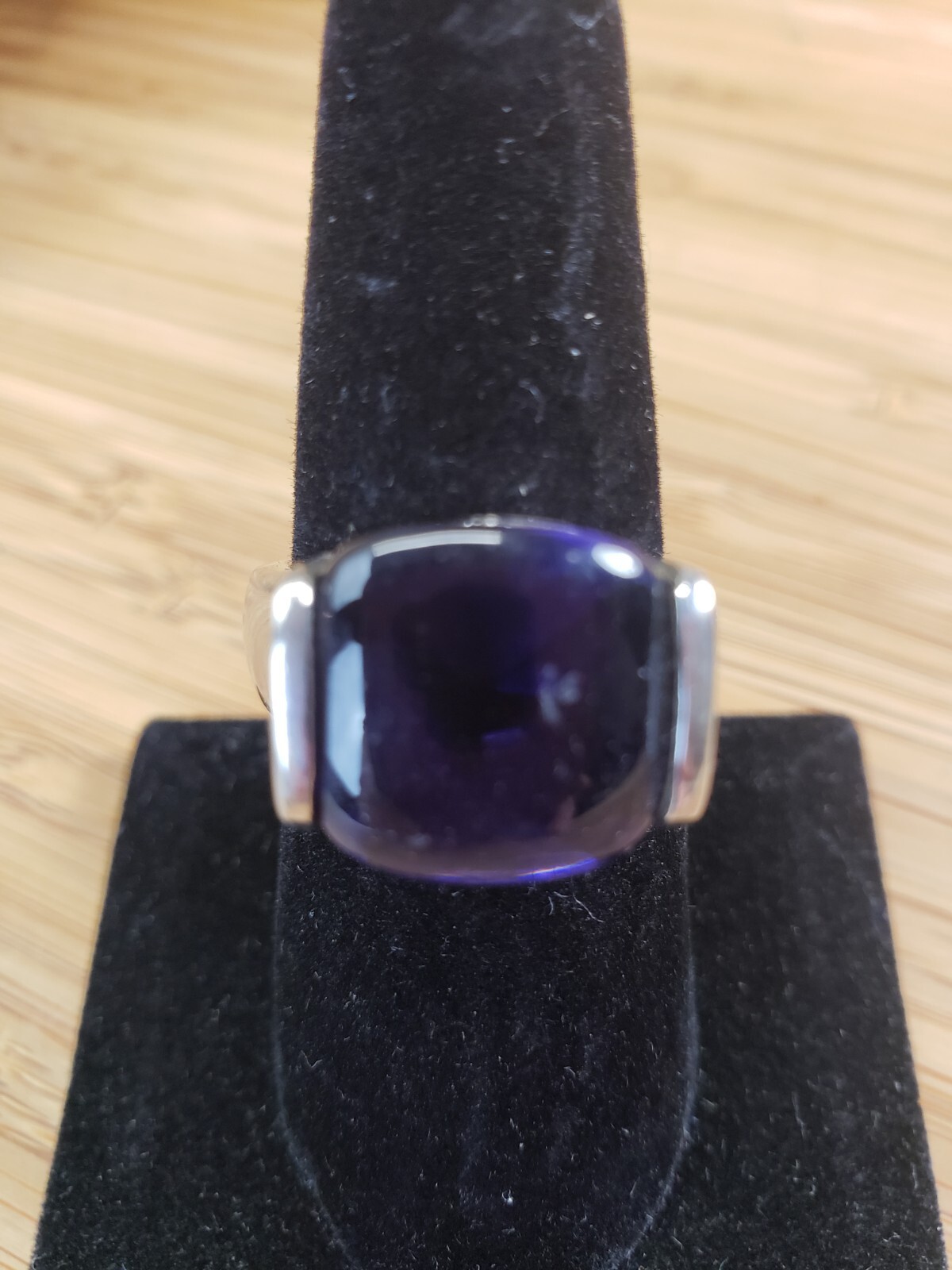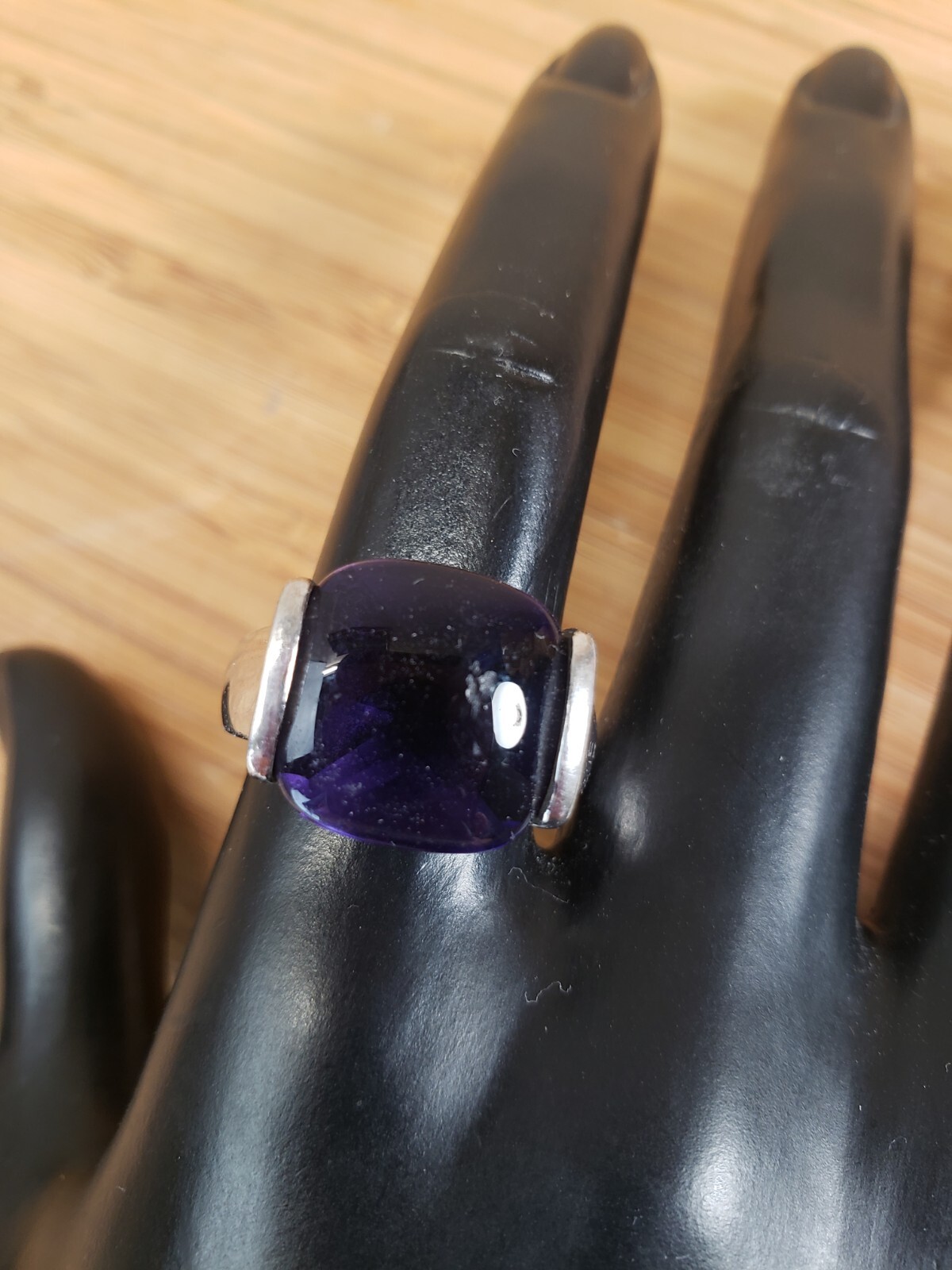 Sterling Silver Square Purple Stone Ring Size 8.75