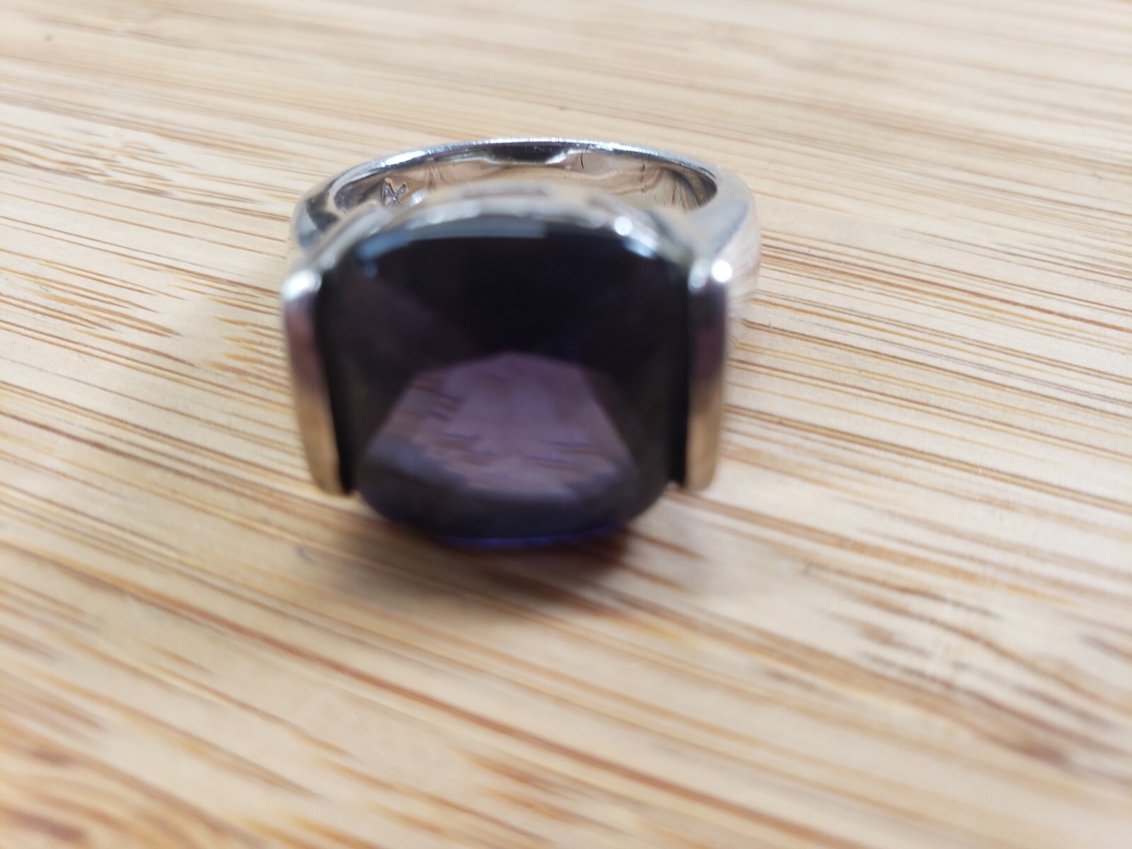 как выглядит Sterling Silver Square Purple Stone Ring Size 8.75 фото