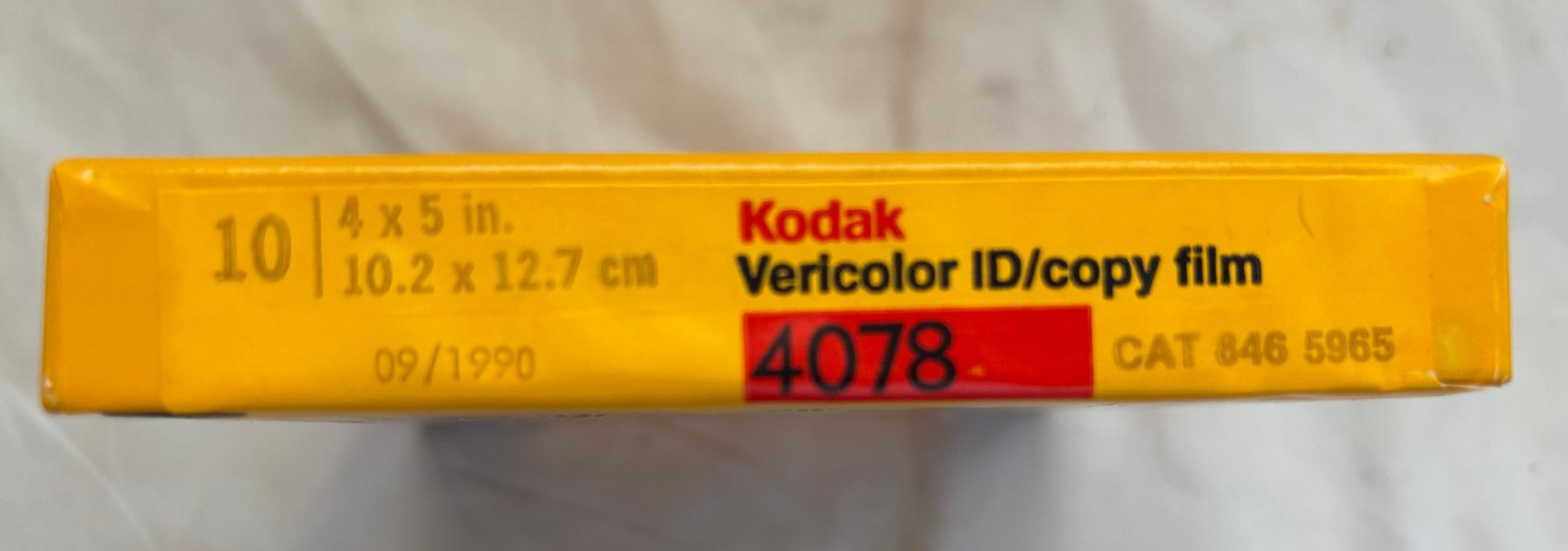 10 Sheets of Kodak Vericolor ID/Copy Film NOS 4 x 5 Sealed 4078
