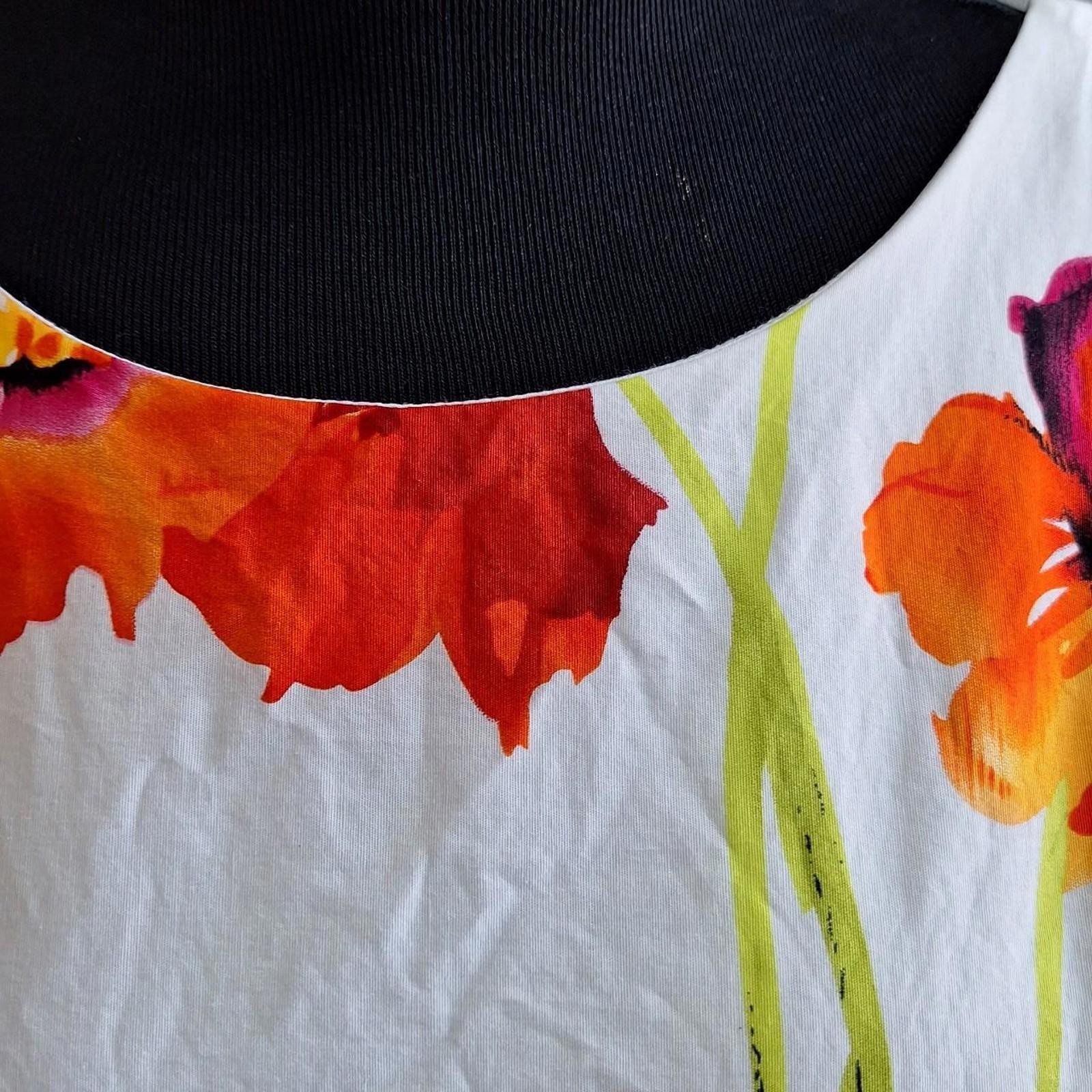 как выглядит Vibrant Floral Print A-line Dress with Orange Accents фото