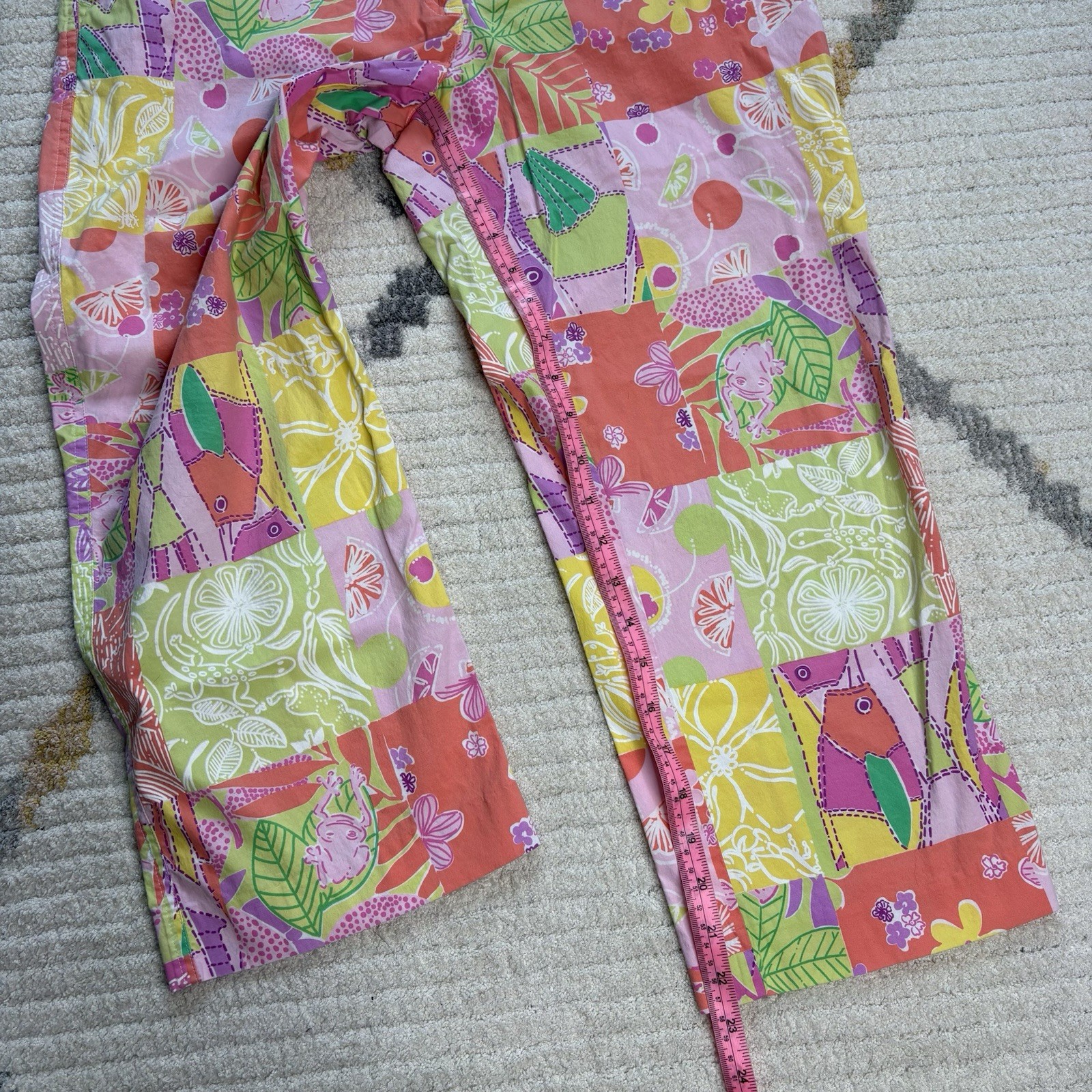 как выглядит Vintage Lilly Pulitzer Frog Flower Patchwork Capri Pants 10 фото