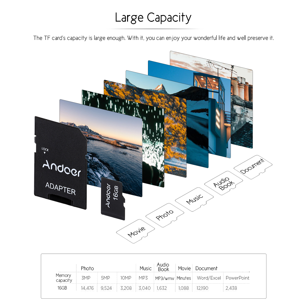 как выглядит Andoer 16GB Class 10 Memory Card TF Card TF Card Adapter For Camera Car TCTM фото