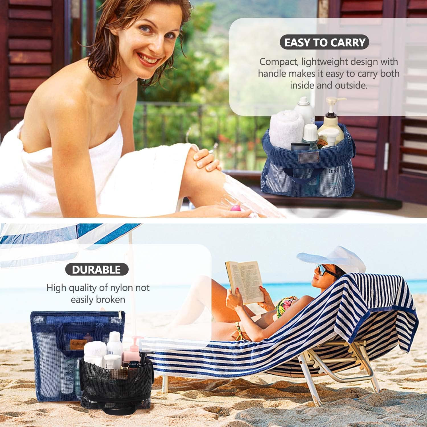 2 Pcs Shower Mesh Caddy Bag Quick Dry Hanging Toiletry and Bath Organizer for Tr