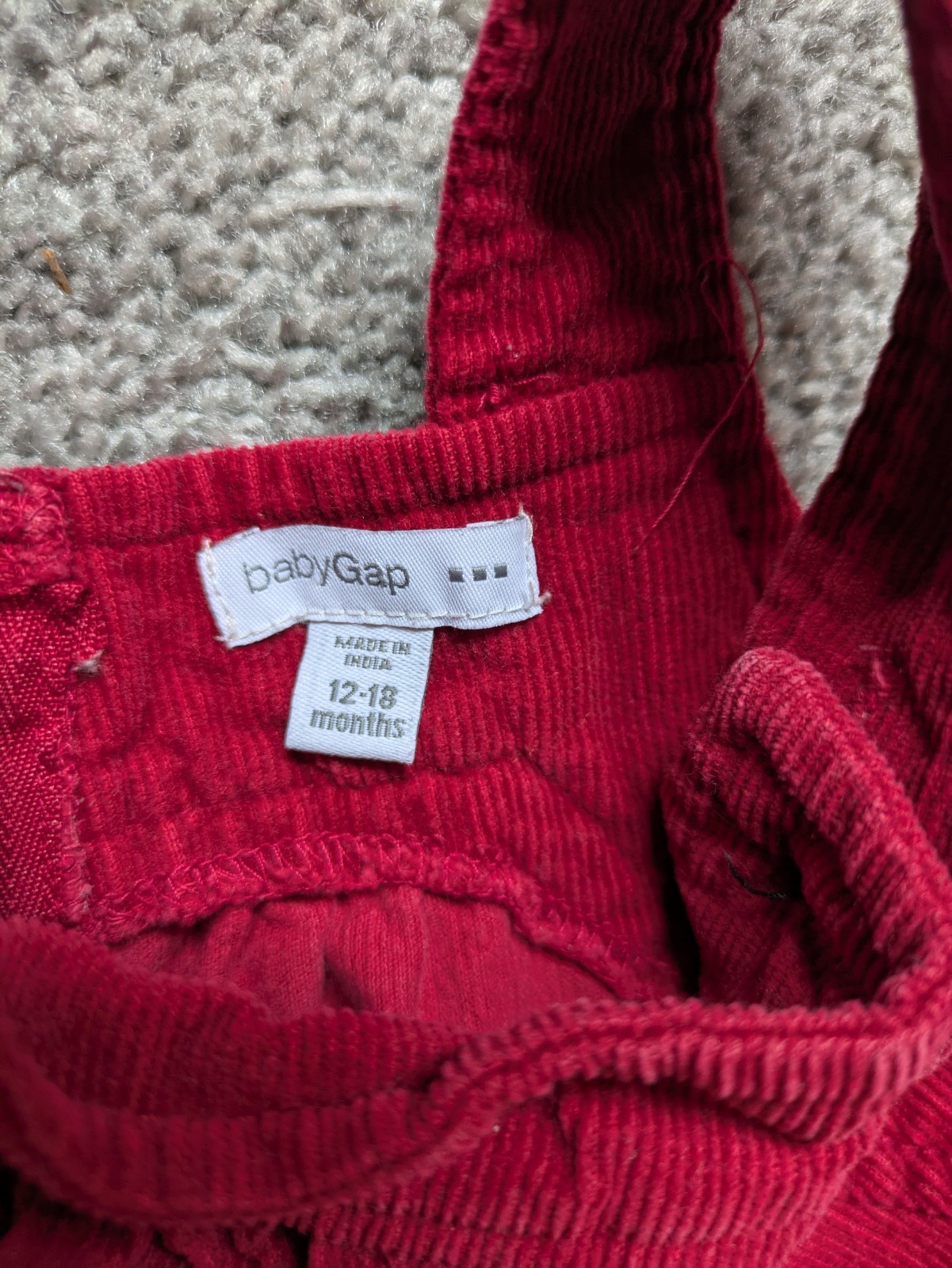 Vintage Baby Gap Red Corduroy Jumper Baby Girl Dress Size 12-18 Months Holiday