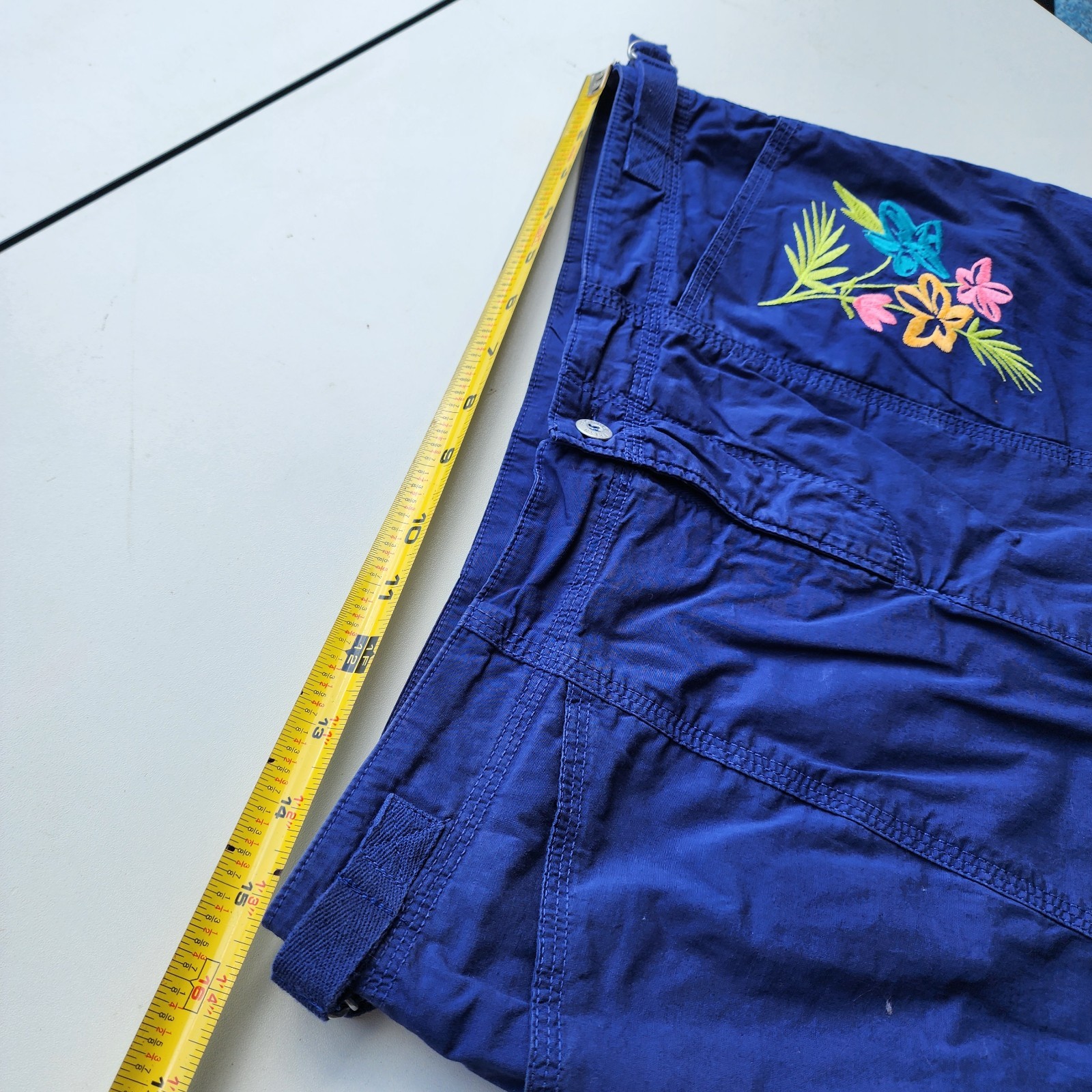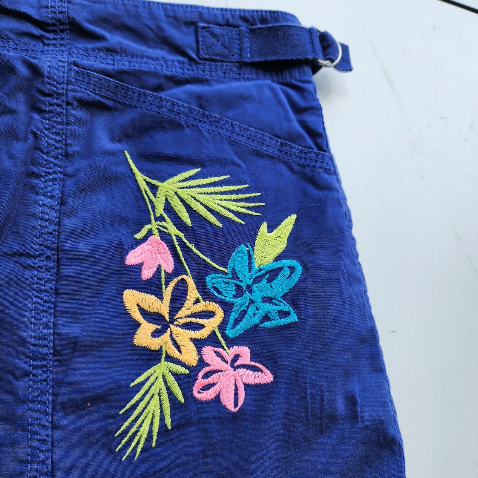 Fresh Produce Casual Comfy Blue Embroidery Floral Cruiser Skort Skirt Cotton S
