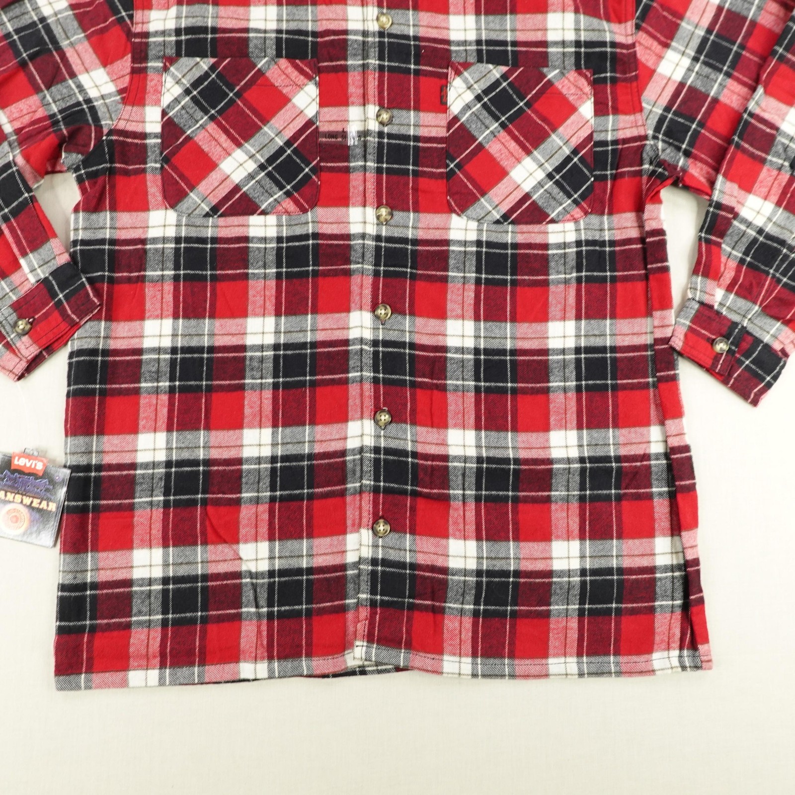 как выглядит Vintage Levis Shirt Mens Large Red Black White Plaid Flannel Deadstock 90s NEW фото