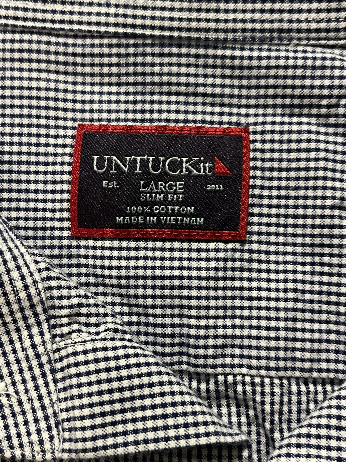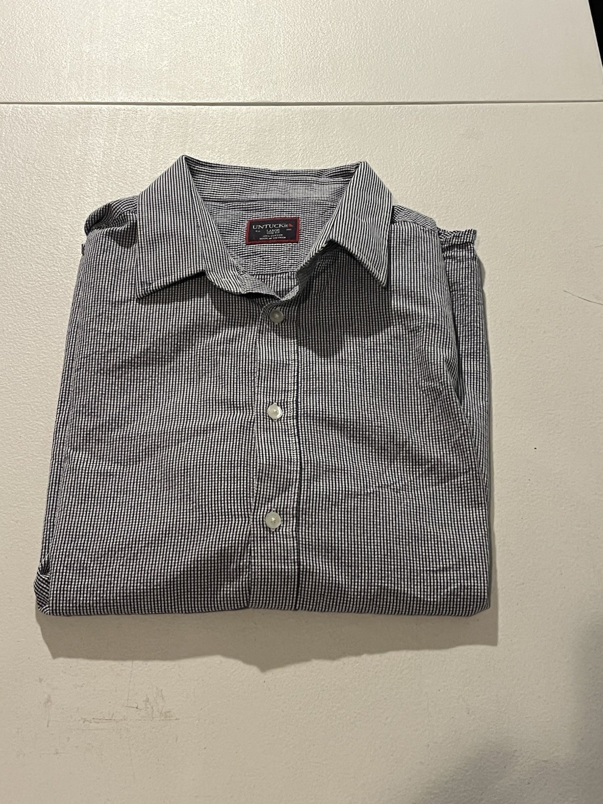 UNTUCKit Men's Blue White Cotton Slim Fit Long Sleeve Button-Up Shirt, Size L