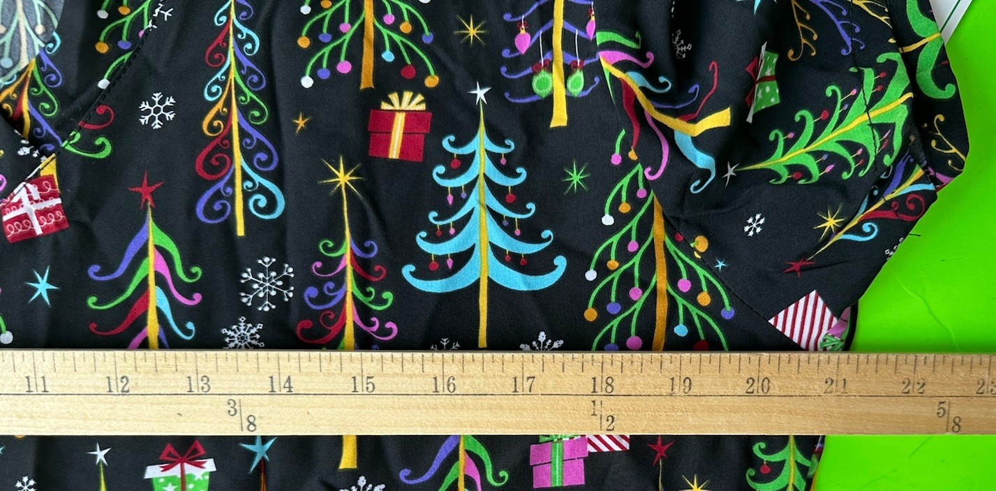 как выглядит Womens GT Performance Black Christmas Tree Snowflakes Ornaments Scrub Top L фото