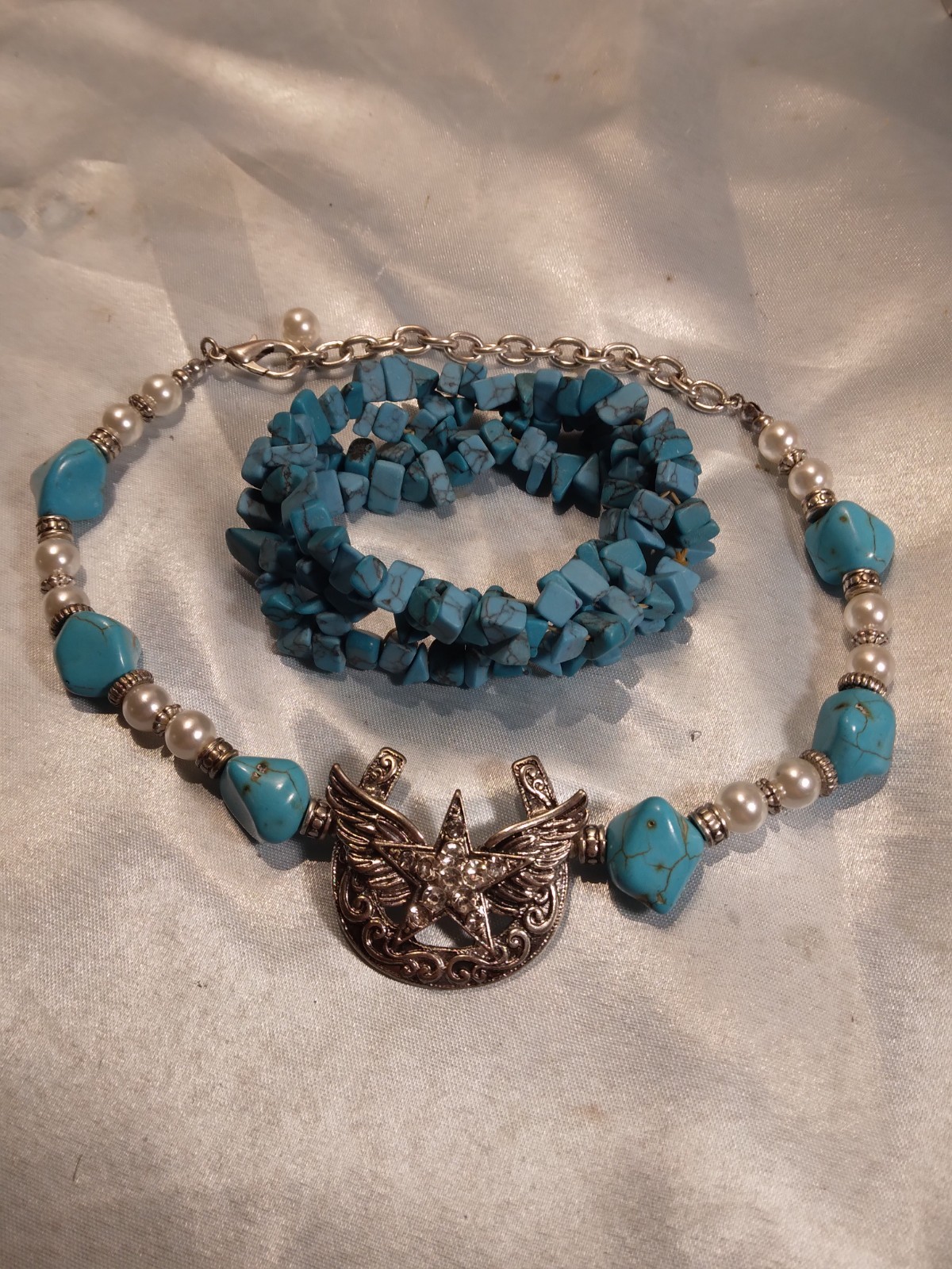 Faux Turquoise Jewelry Set Silver Tone Boho Western Southwest Style Stones