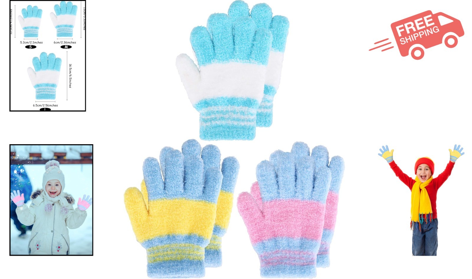 Cozy 3-Pair Children s Winter Mittens - Stretchy Full-Finger Knit Design