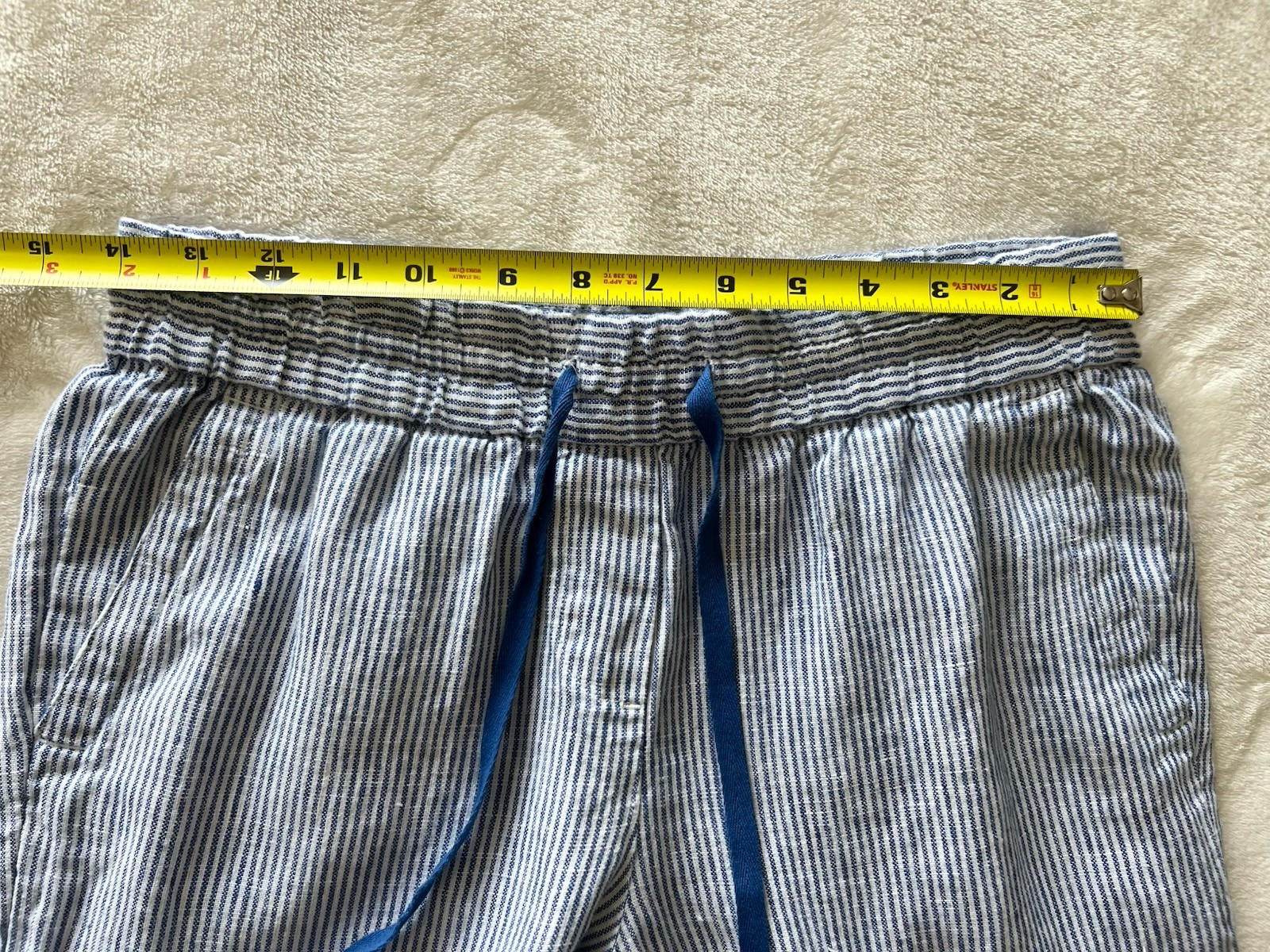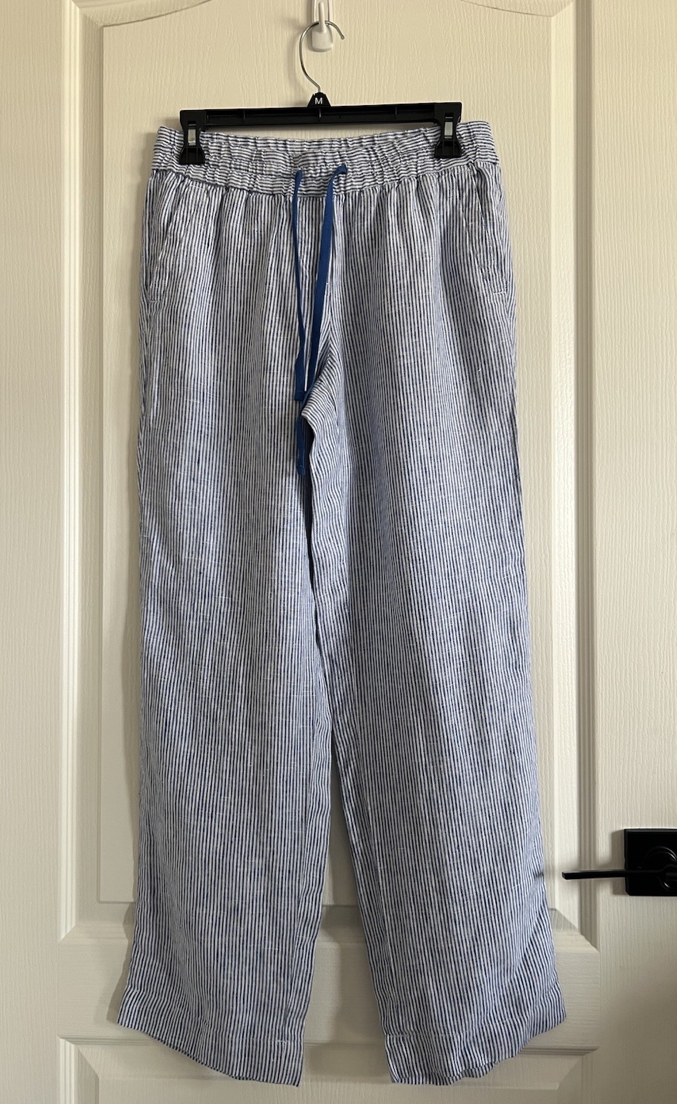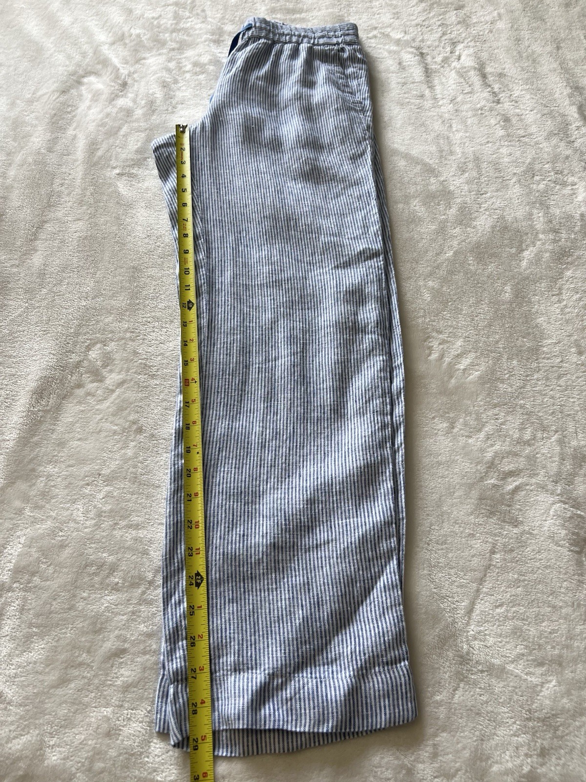 как выглядит NWT 109 Talbots Sz P Washed 100 Linen Wide Leg Pants blue white Billy stripe фото