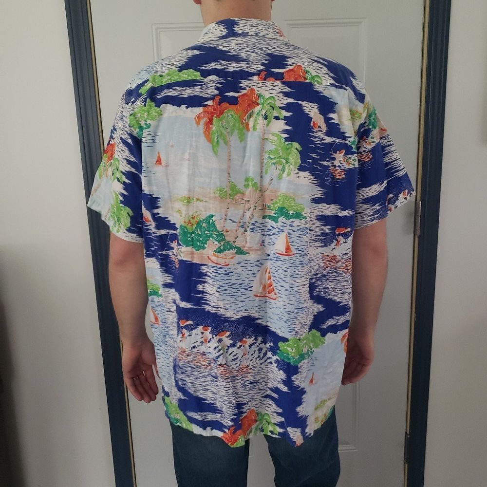 как выглядит 90s Cotton Colorful Tropical Print Shirt фото