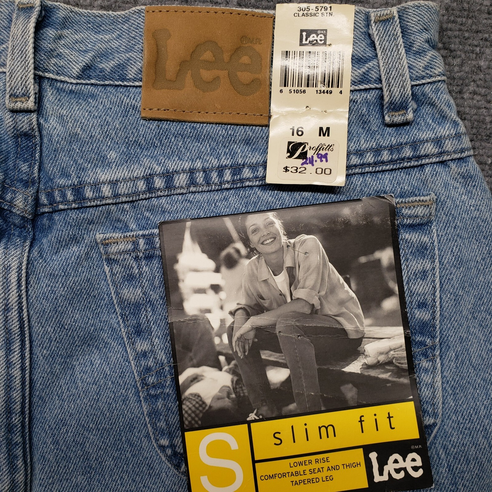 Vintage Lee Denim Jeans Womens 16 Light Blue Tapered Leg Slim Fit Solid USA New