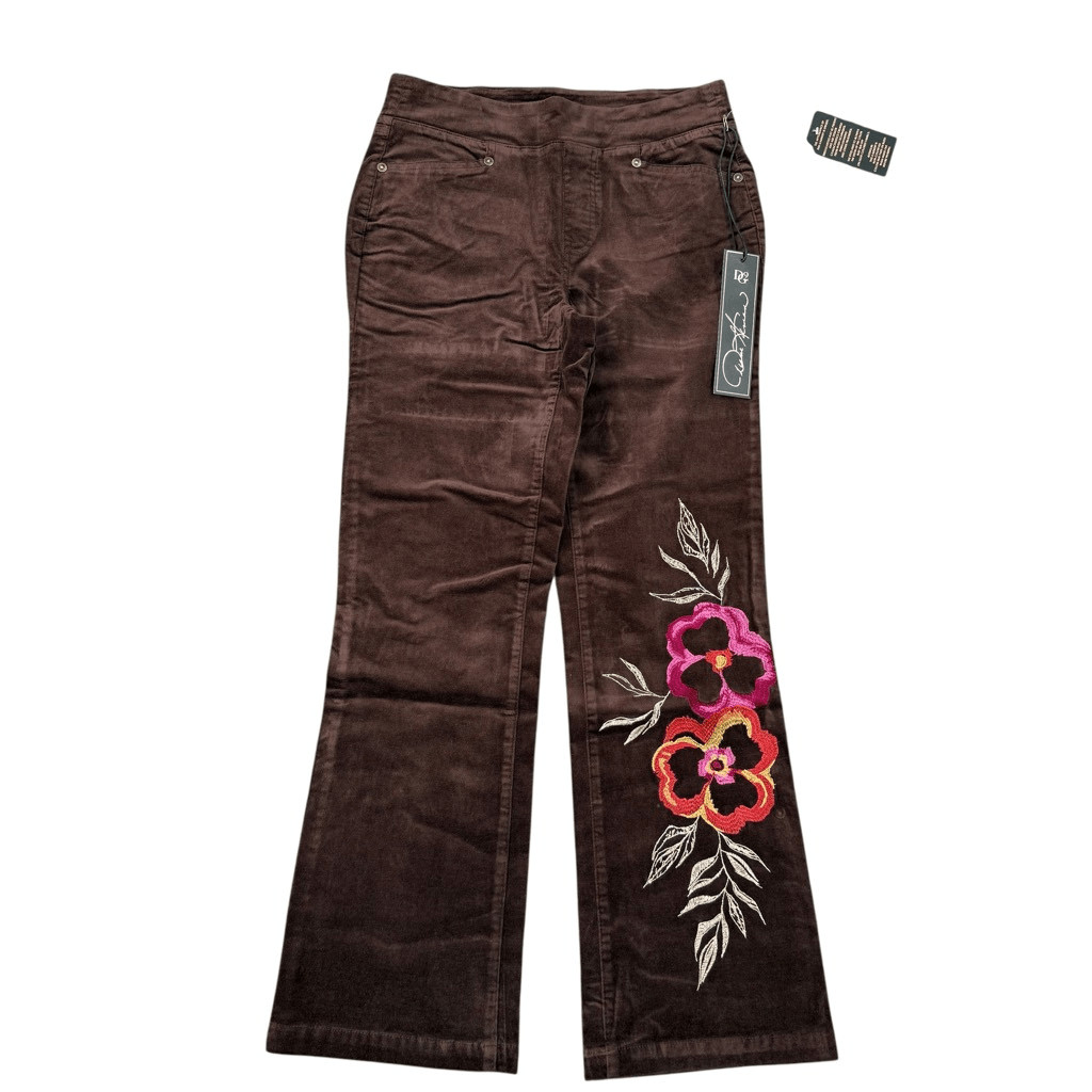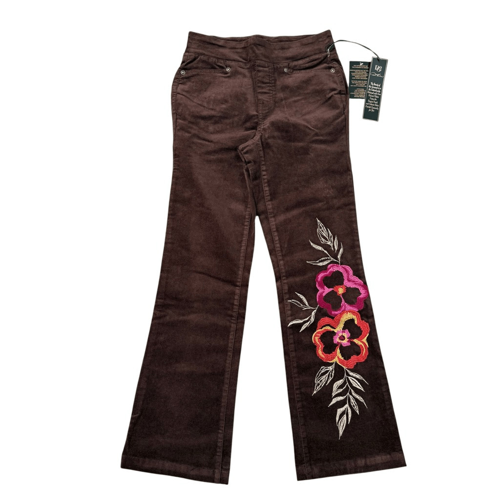 DG2 by Diane Gilman Stretch Velvet Pull-On Embroidered Bootcut Pant size 6P NWT
