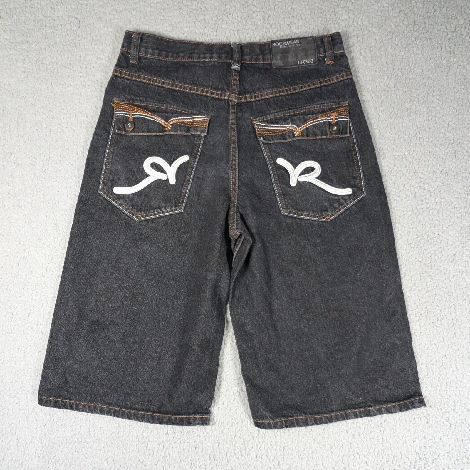 как выглядит Rocawear Jean Shorts Boys Size 18 Black Logo Pocket Y2K Hip Hop Streetwear Denim фото