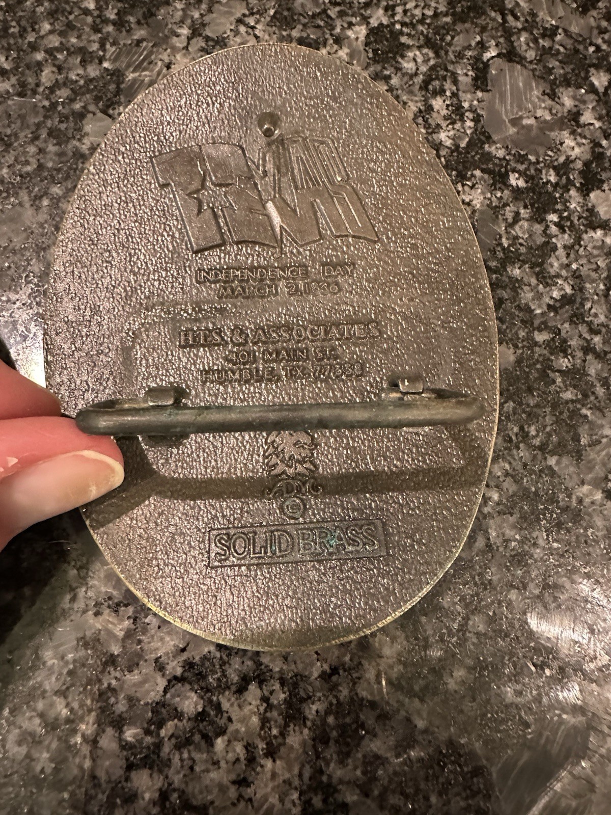 как выглядит Solid Brass Texas Sesquicentennial Belt Buckle Made In Humble, Texas фото