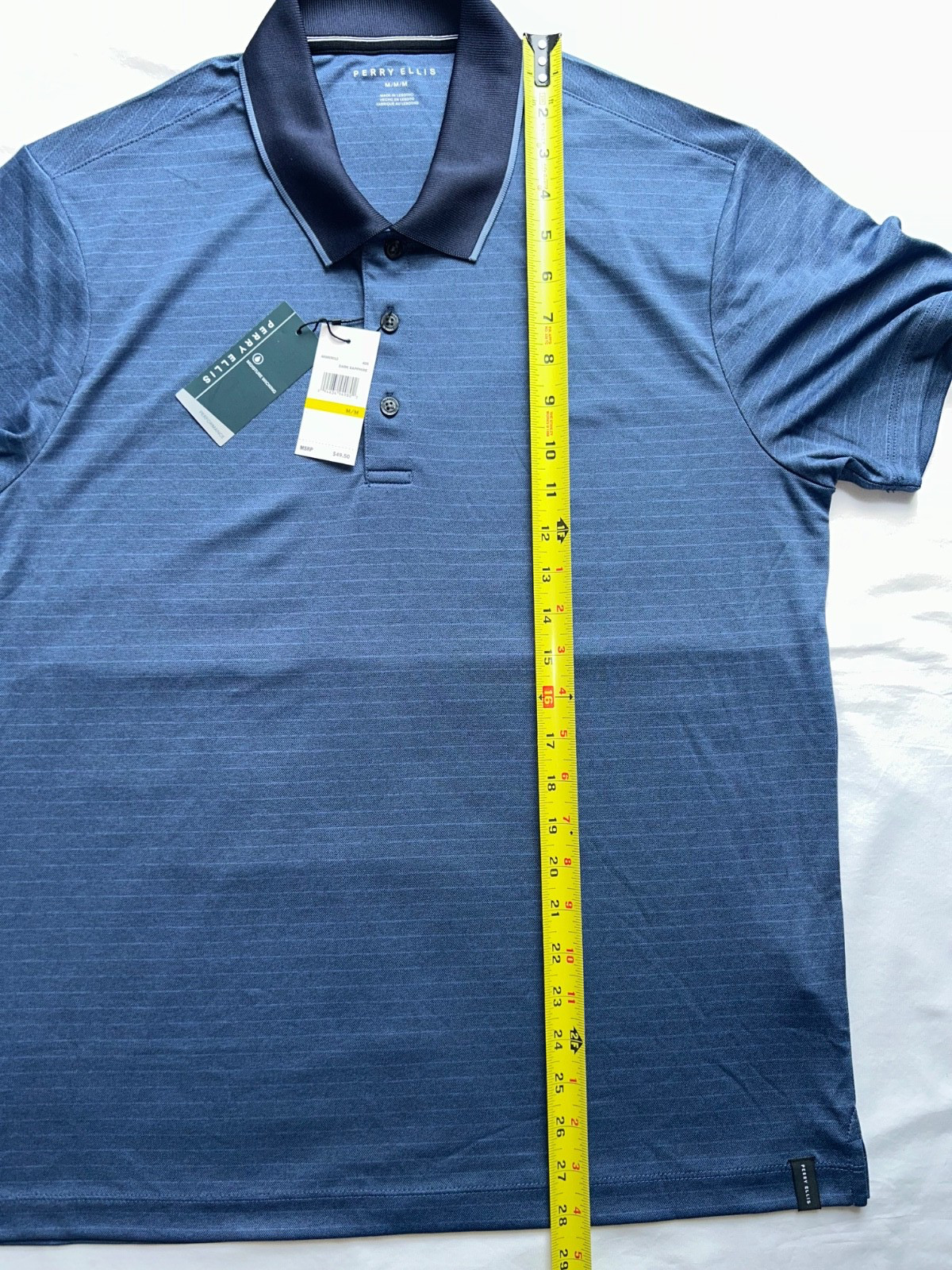 как выглядит Perry Ellis Performance Moisture Wicking Polo Shirt Golf Dark Sapphire Size M фото