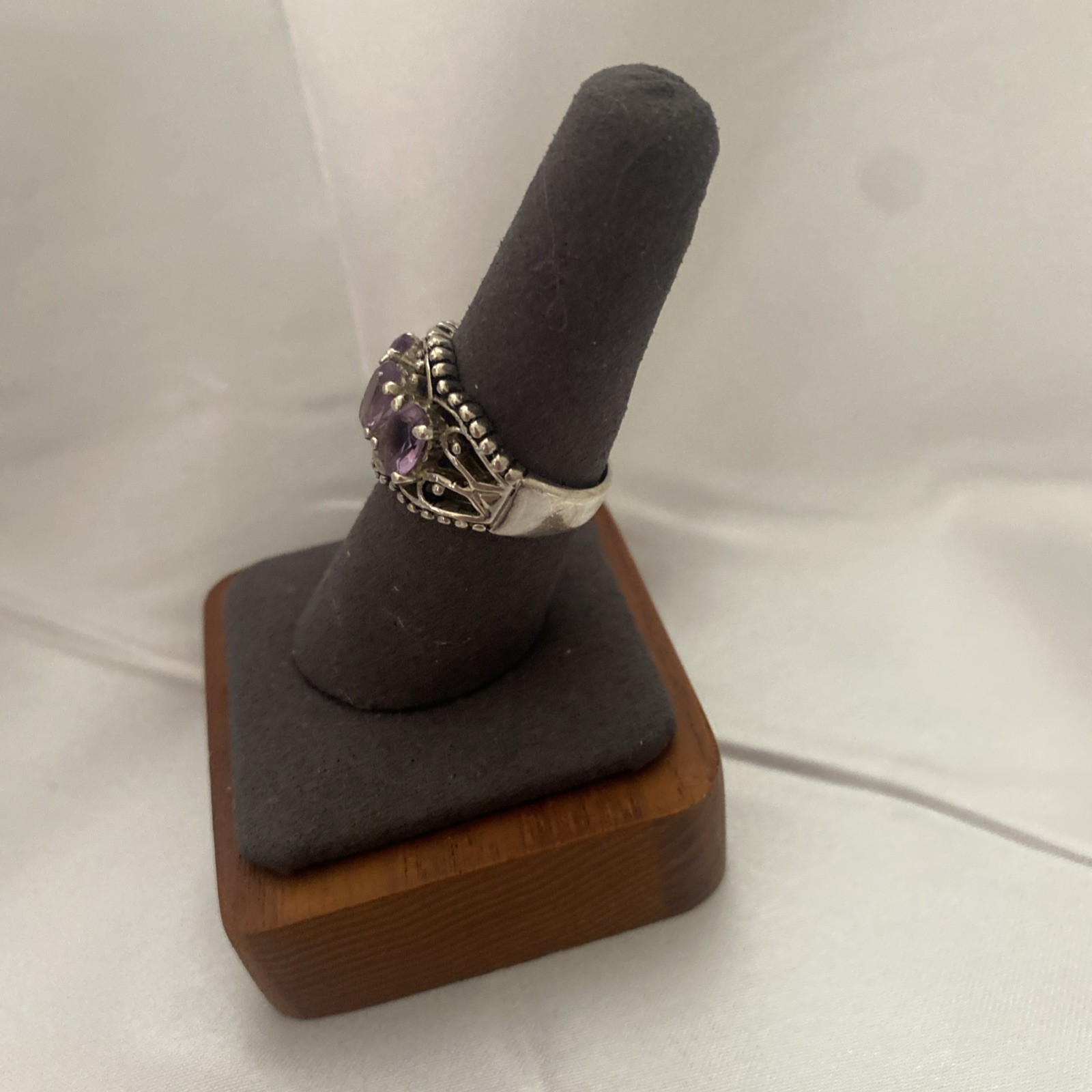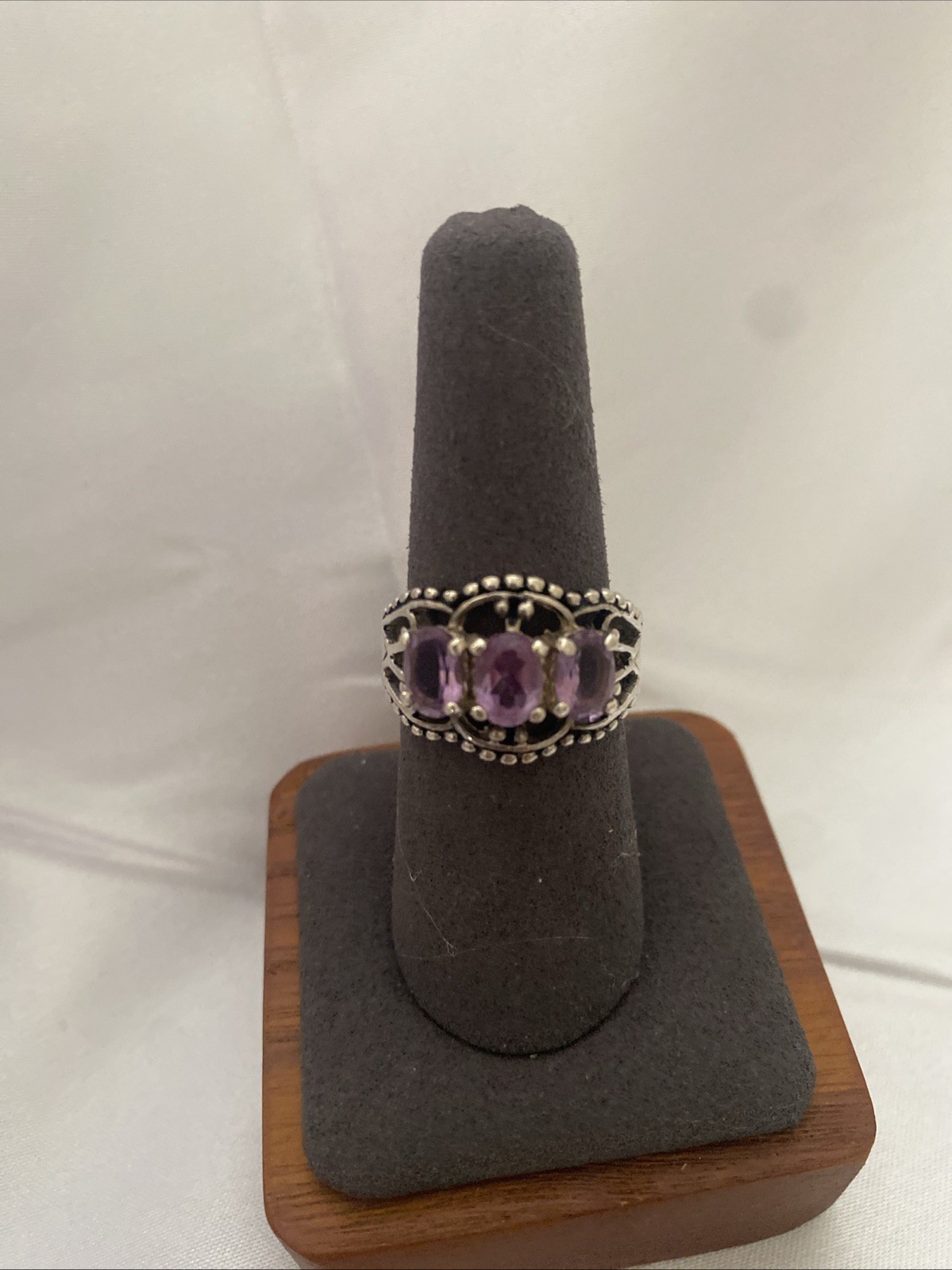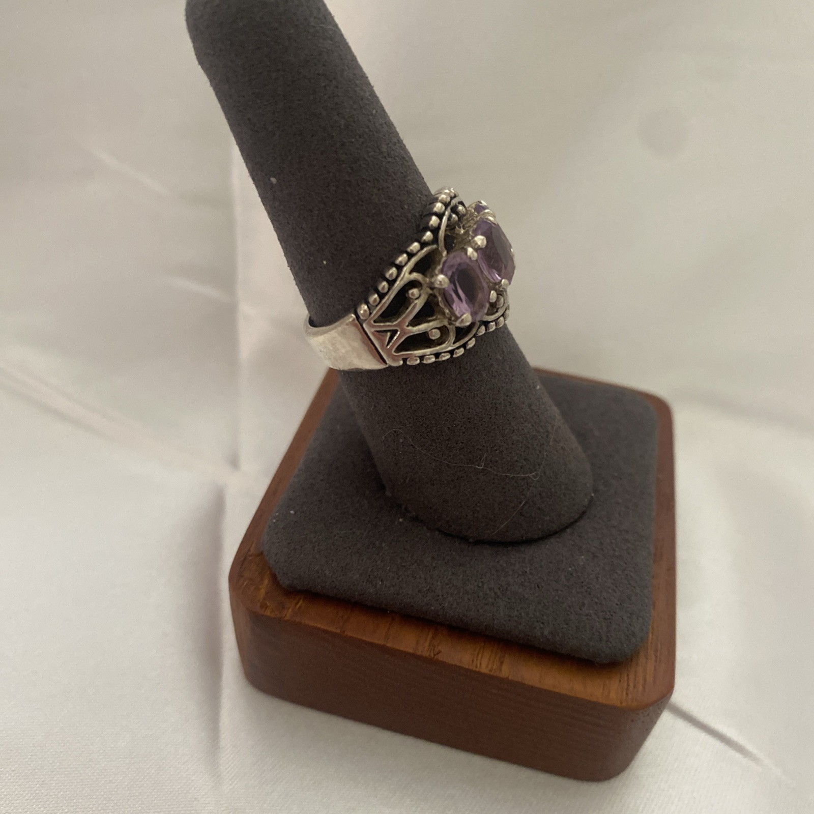 как выглядит SETA Sterling Silver Triple Oval Purple Amethyst Beaded Trim Band Ring 925 Sz: 8 фото