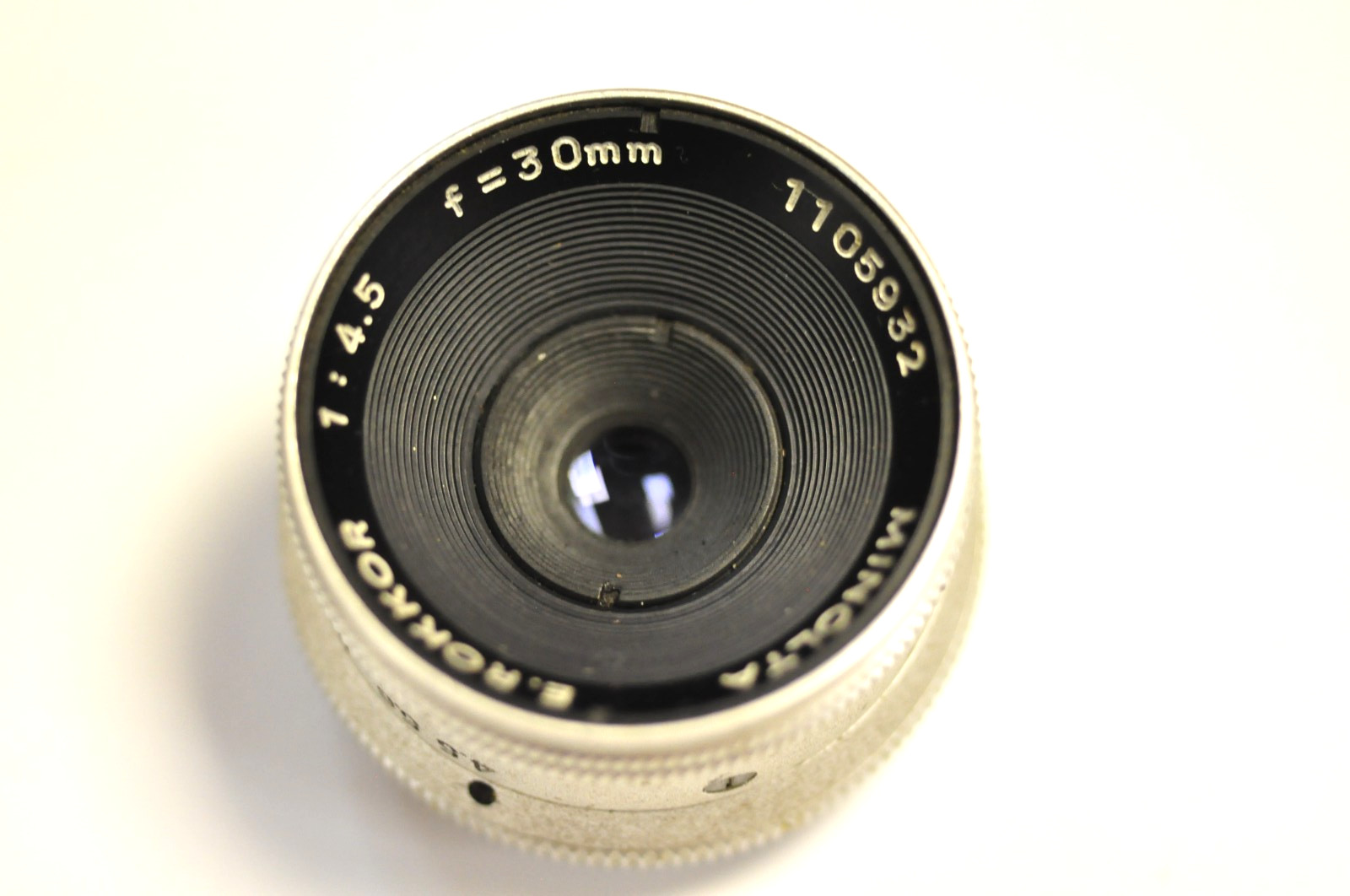 Minolta E. Rokkor 30mm f4.5 enlarging lens w/39mm thread. READ. AS IS.