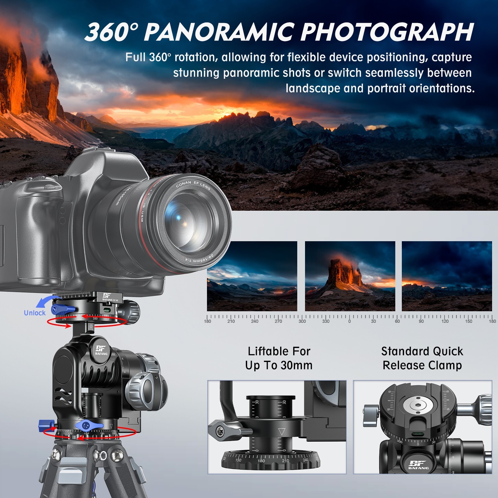 BAFANG Geared Tripod Head with Quick Release Plate,360 Panoramic Geared Head