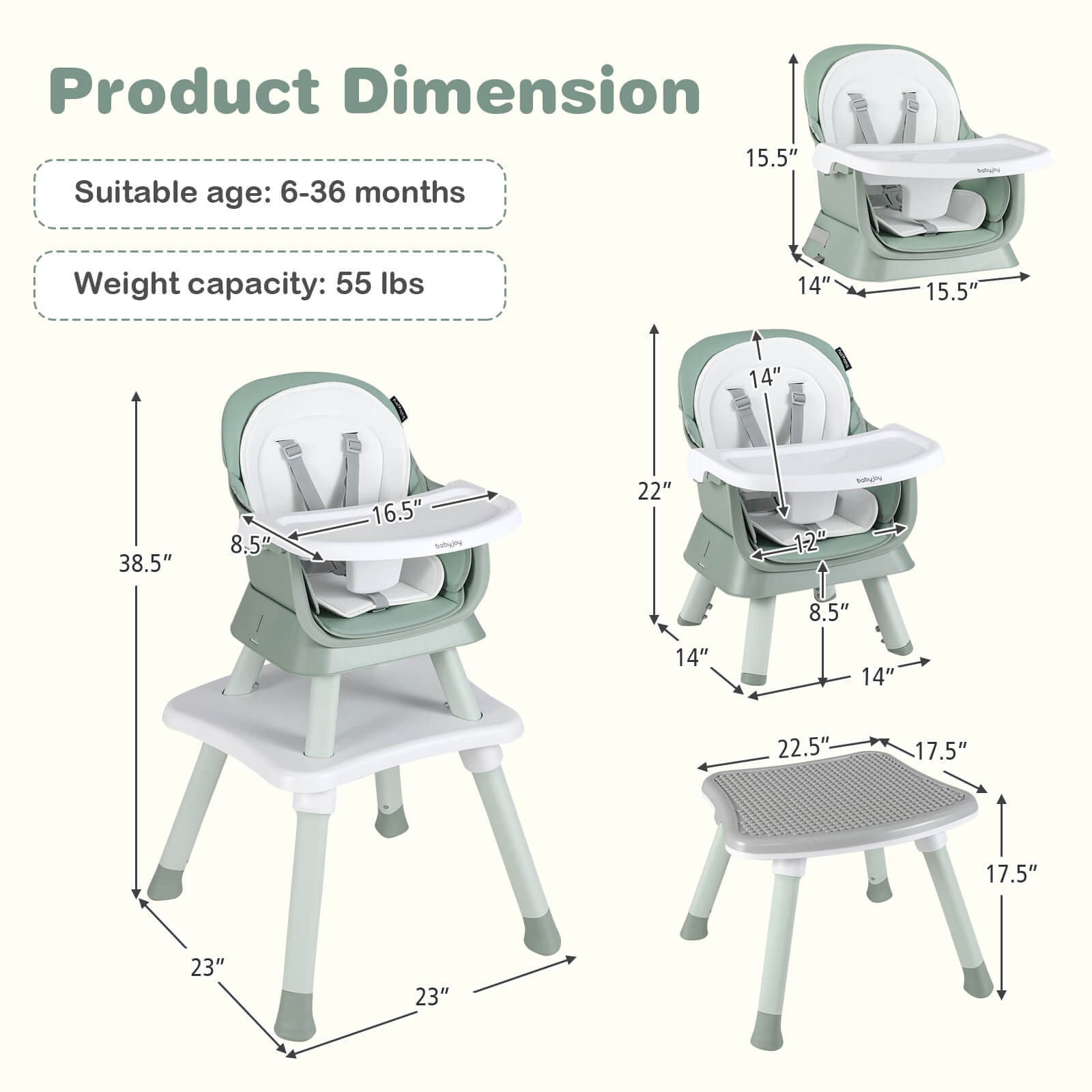 Особенности: 8-in-1 Baby High Chair, Convertible Booster Seat