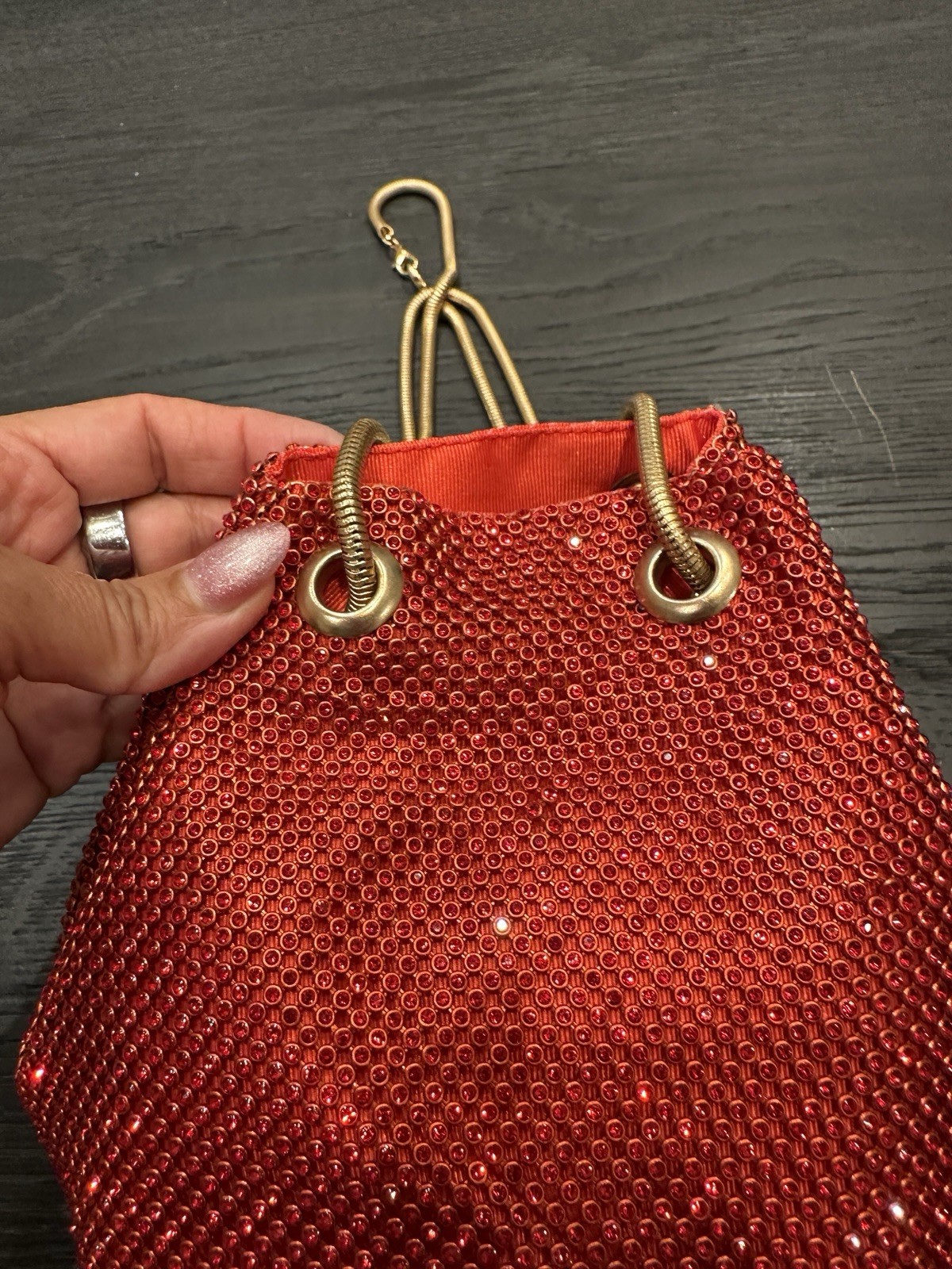 как выглядит Women Evening Clutch Rhinestone Crystal Bucket Party Purse Shoulder Bag Red/gold фото