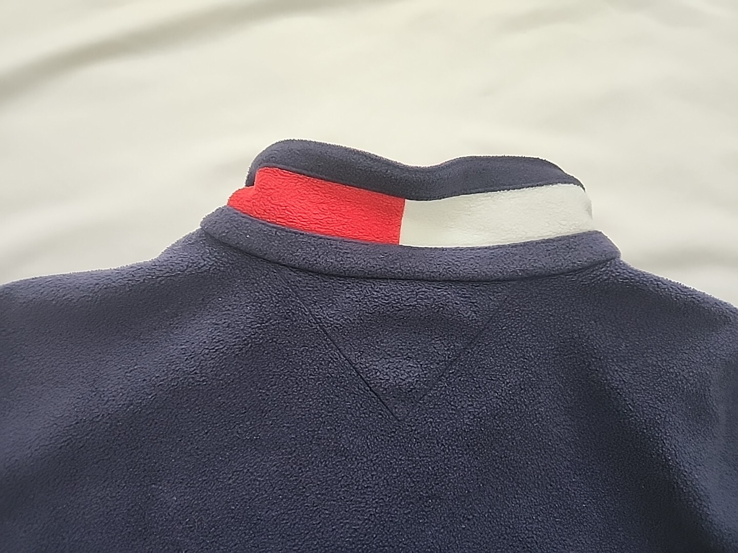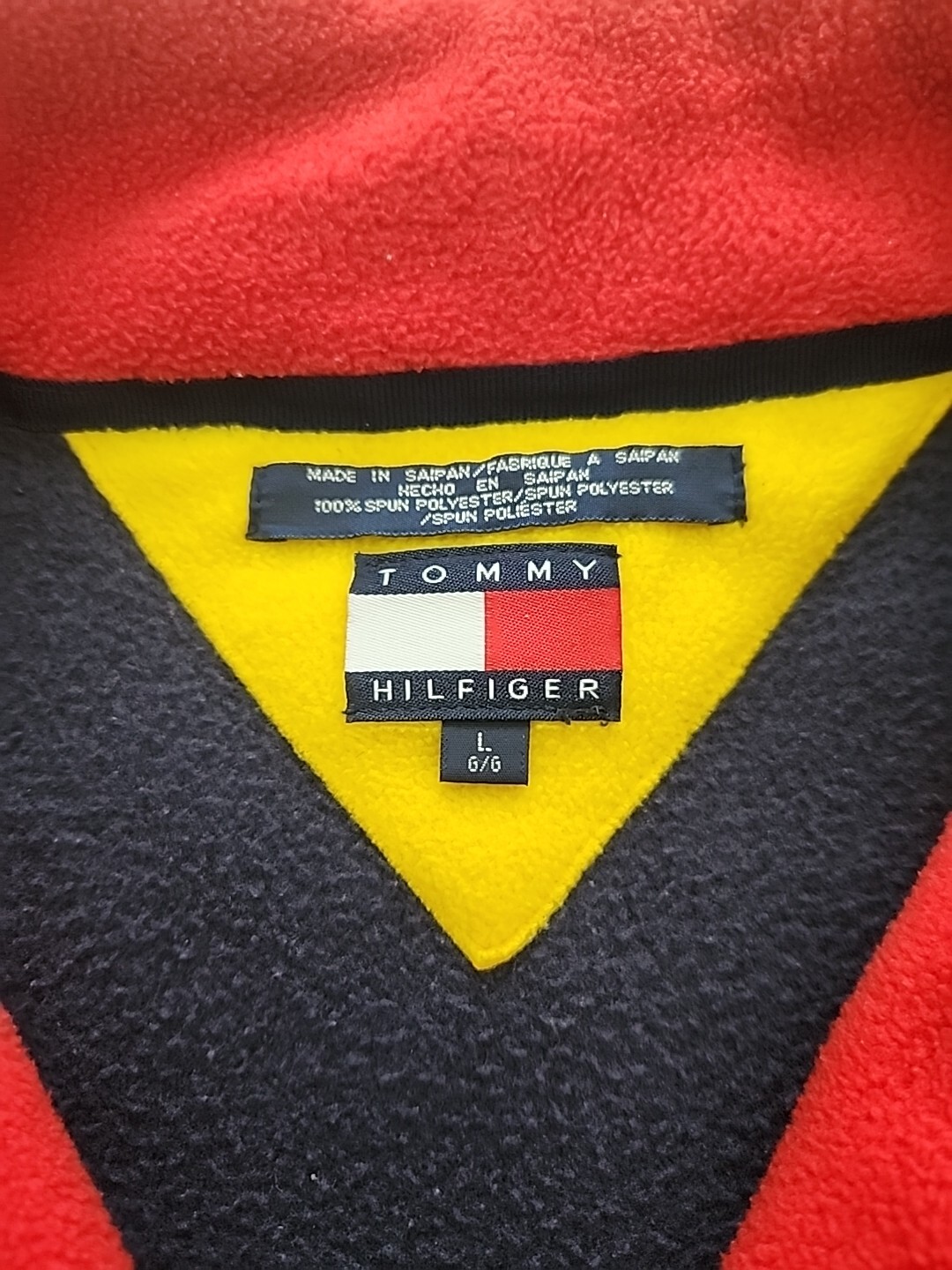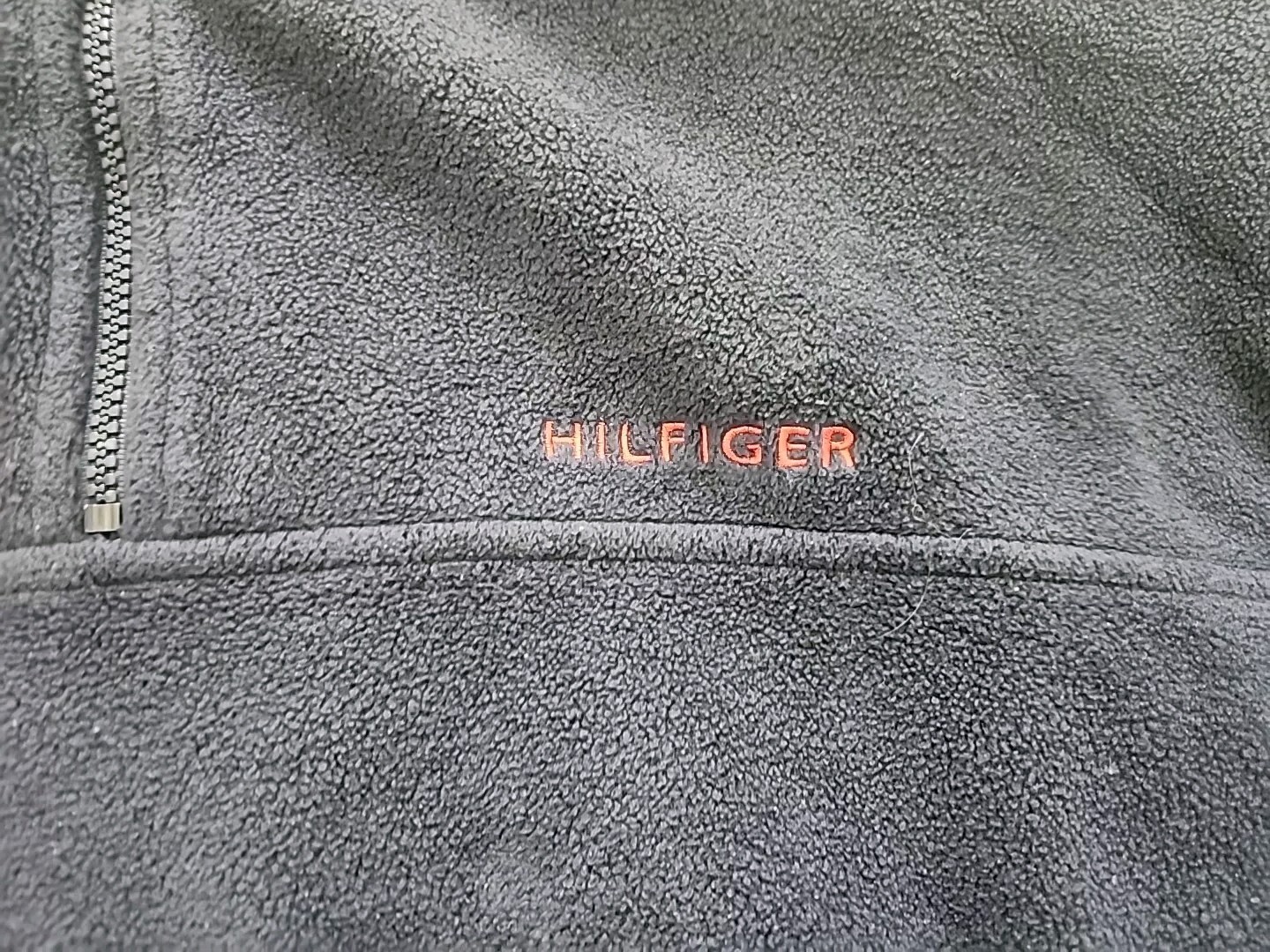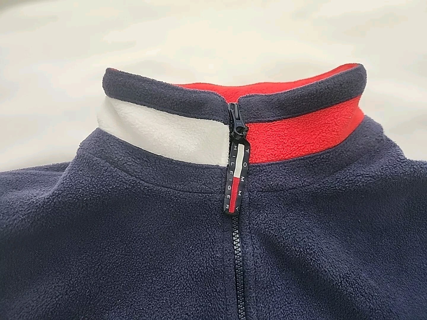 как выглядит VTG 90s Tommy Hilfiger Spellout Quarter Zip Fleece Pullover Blue Size L фото