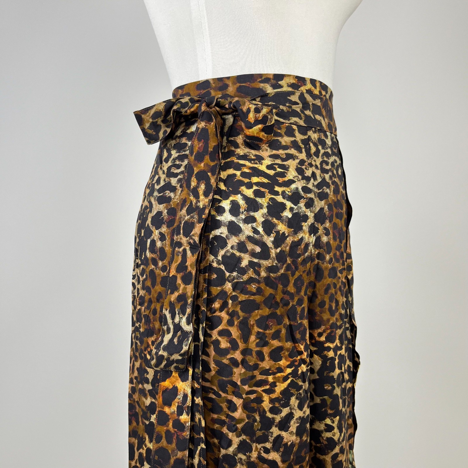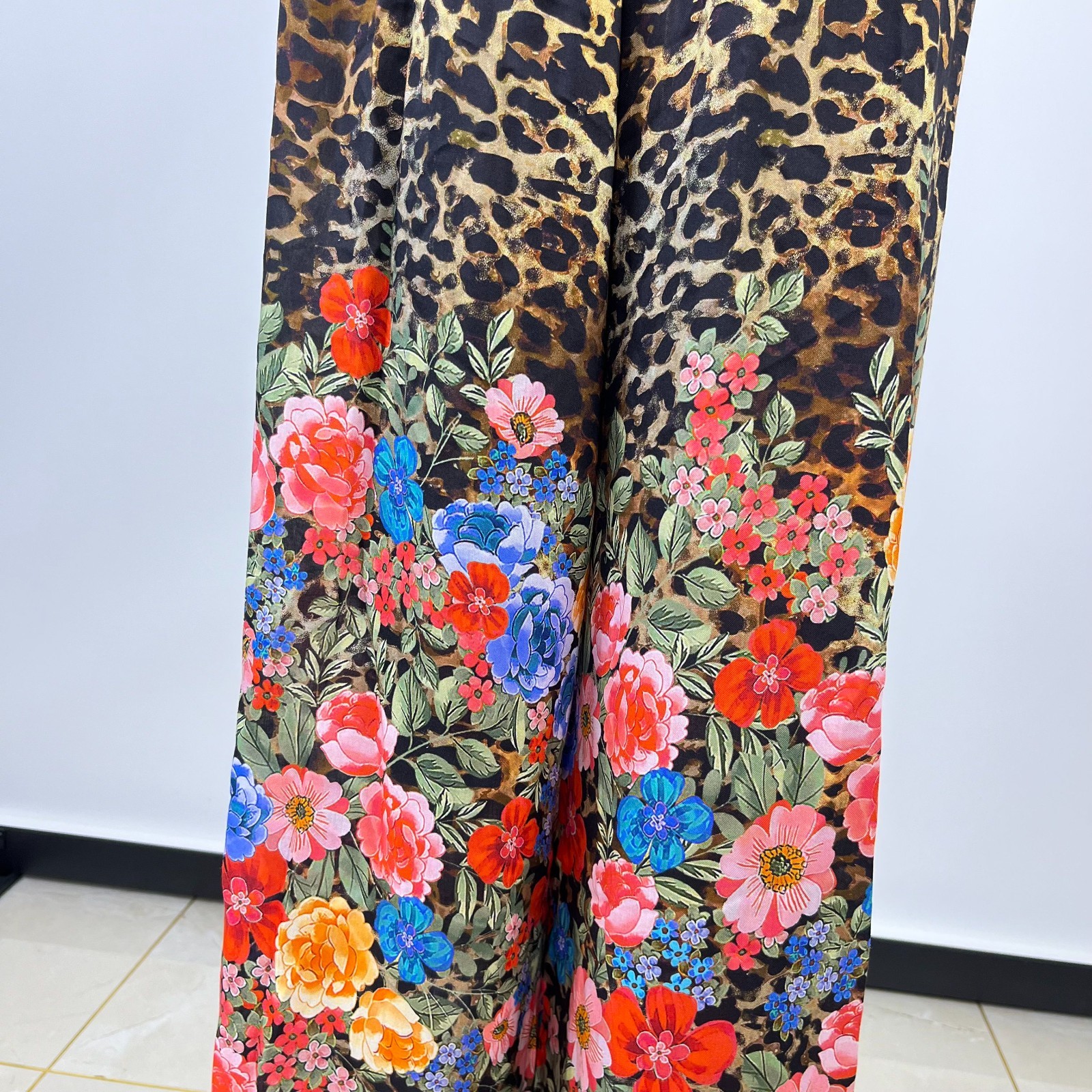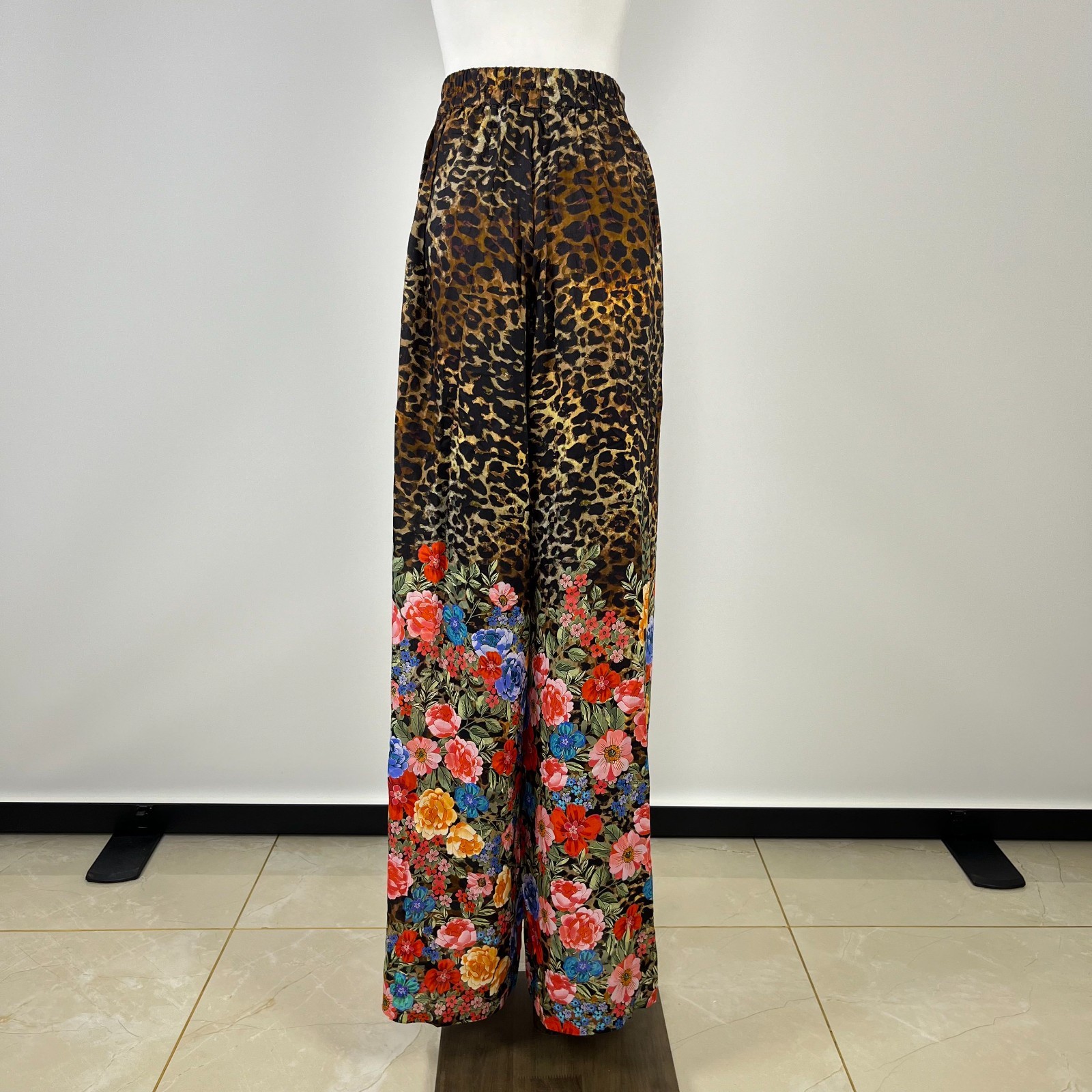 как выглядит NWOT Johnny Was Cheetah Floral-Print Wrap Pants Pull On Size L Wide-Leg фото