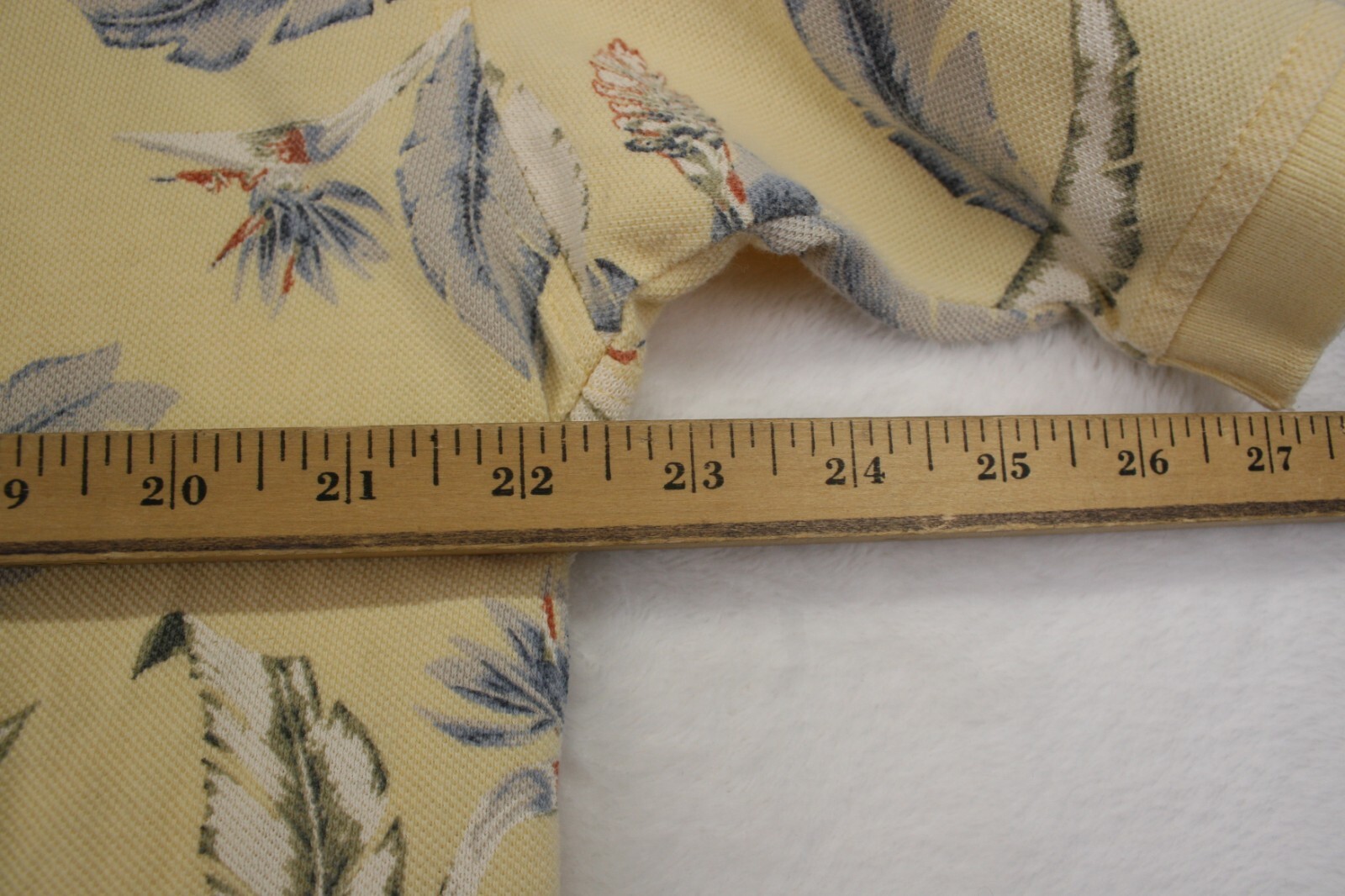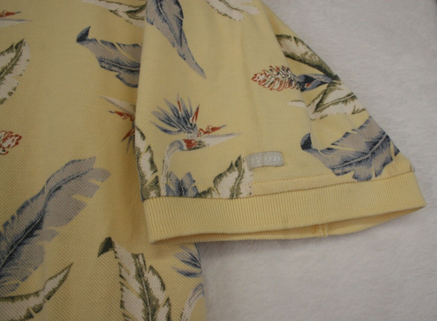 как выглядит Vintage IZOD Yellow Palm Leaf Hawaiian Polo Shirt Button Up Cotton Mens Large L фото