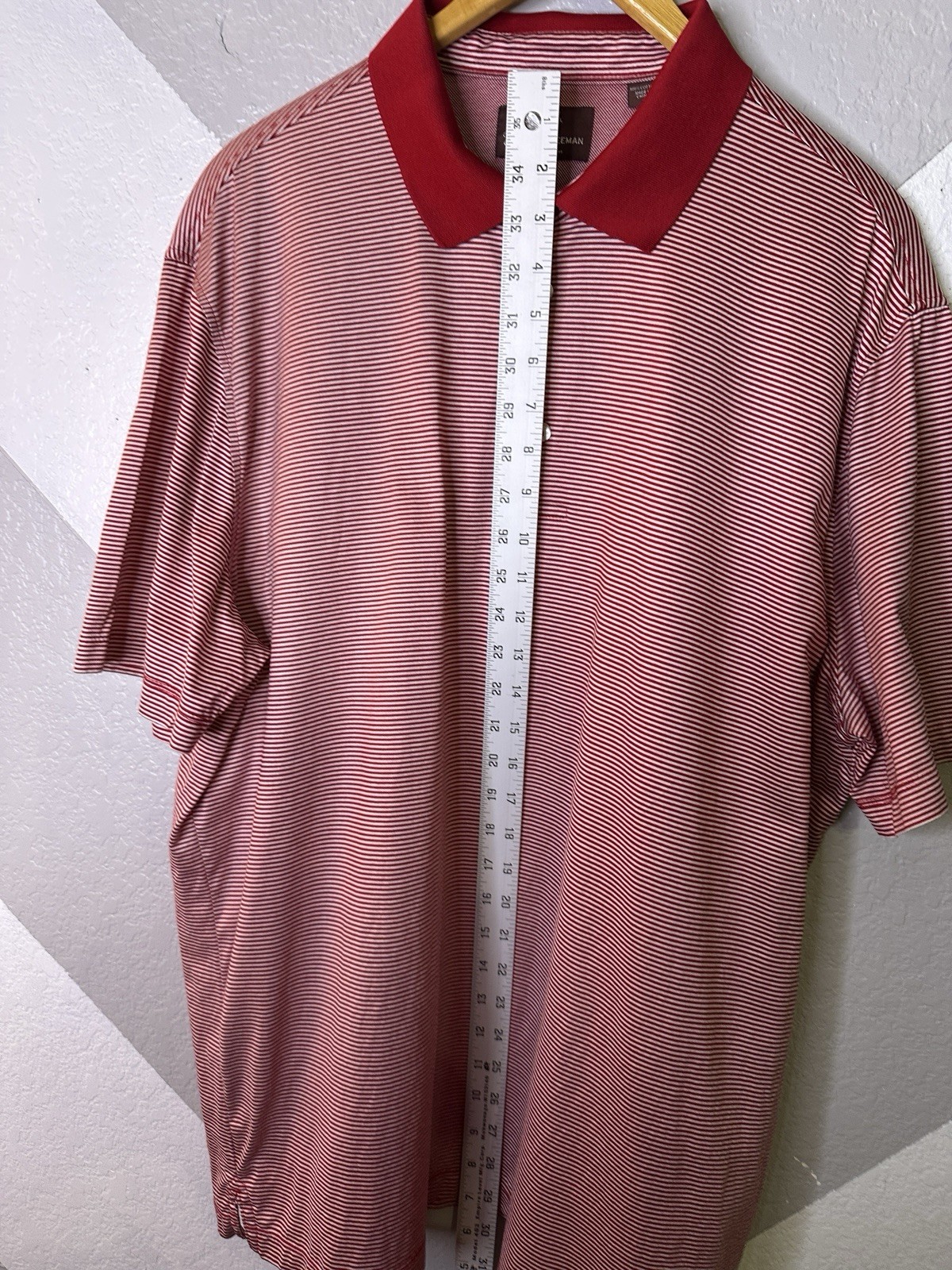 как выглядит Hickey Freeman Golf Polo Shirt Mens Size XL Red Striped Short Sleeve EUC фото