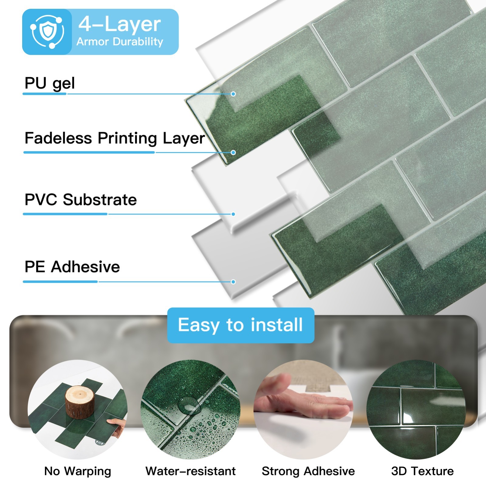 10pcs Peel and Stick Backsplash Thickened Tiles, 12''x12'', Cover 10 Sq.Ft.