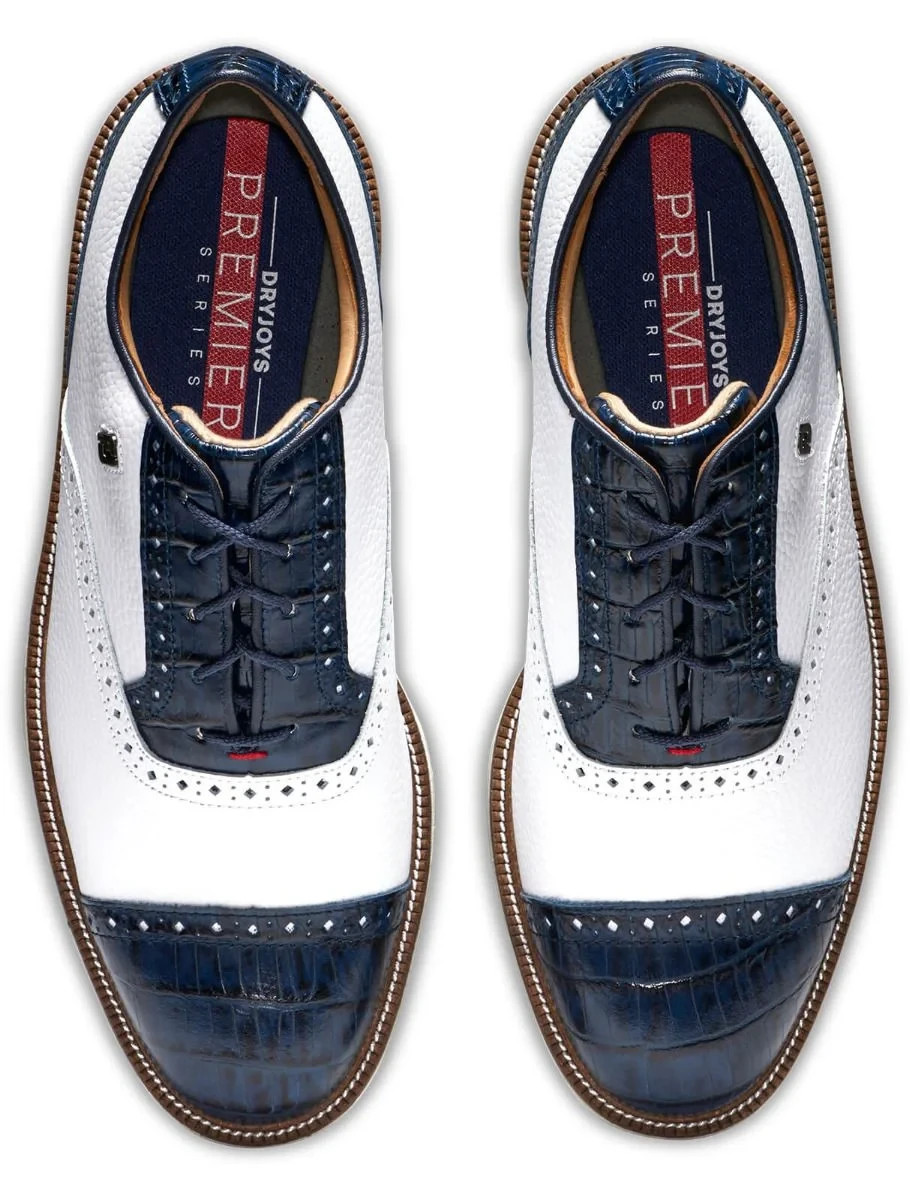 FootJoy Dryjoys Premiere Series Tarlow Golf Shoes - White/Navy 53904