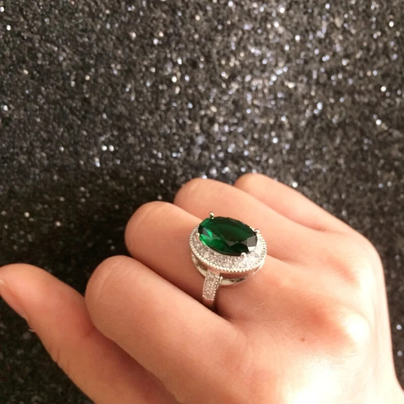 как выглядит 3 Ct Simulated Emerald Proposal Ring 925 Silver Plated Ring For Valentine Gifts фото