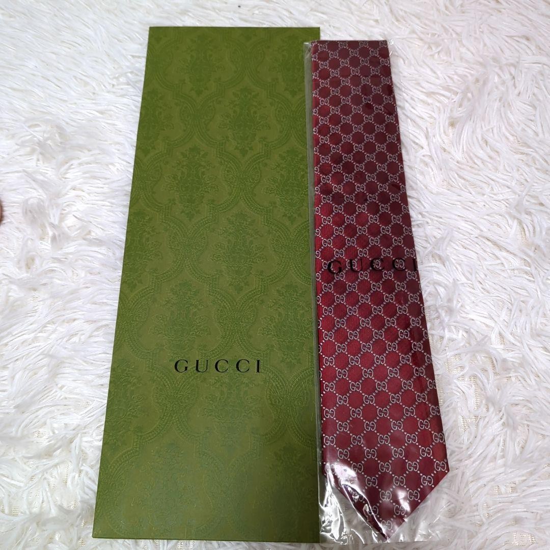 как выглядит New Unused Gucci Neck Tie Red Silver 100 Silk Made in Italy GG Check фото