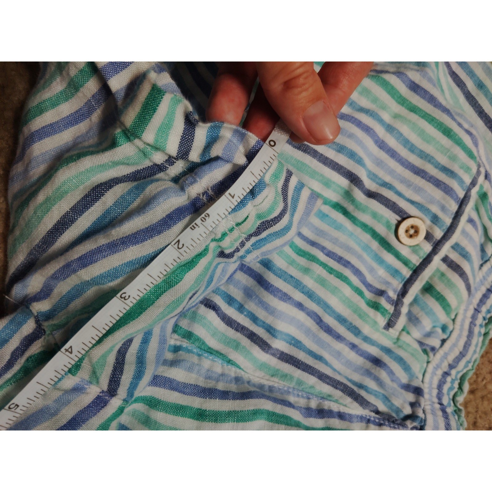 Y2K Tommy Bahama 100 Linen Shorts Striped Blue Green White Women's Sz Medium