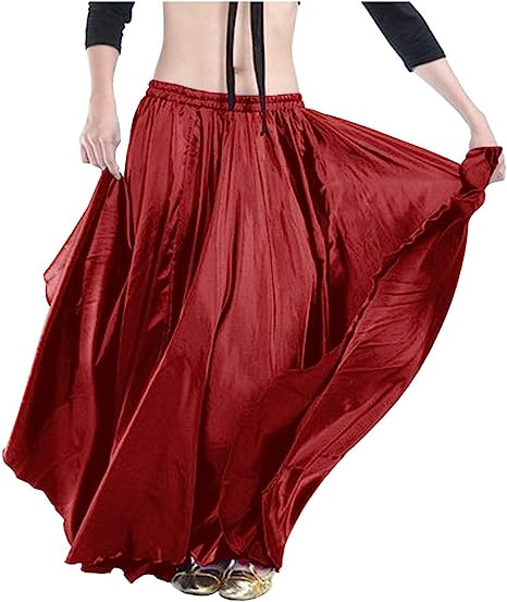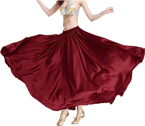 Women Satin Full Circle Swing Skirts Halloween Belly Dance Costumes Tribal Dress