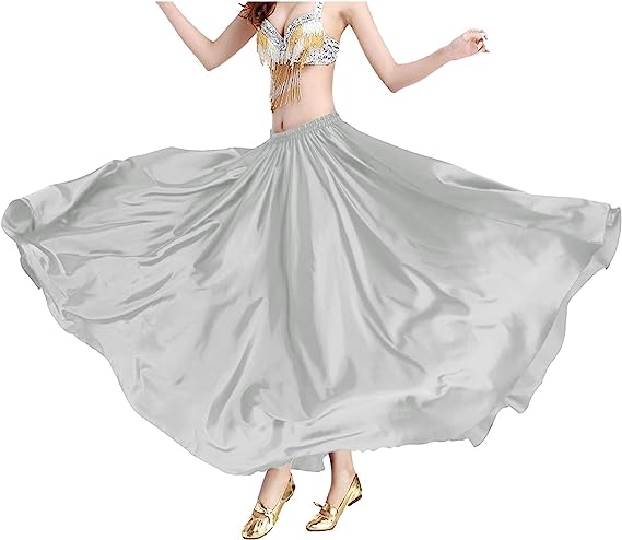 Women Satin Full Circle Swing Skirts Halloween Belly Dance Costumes Tribal Dress