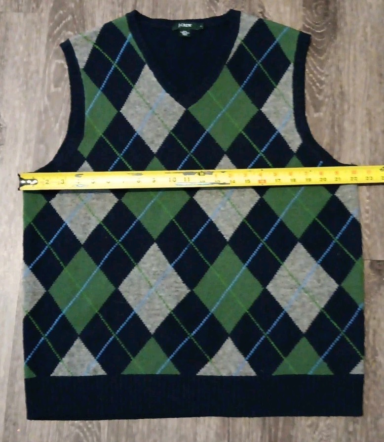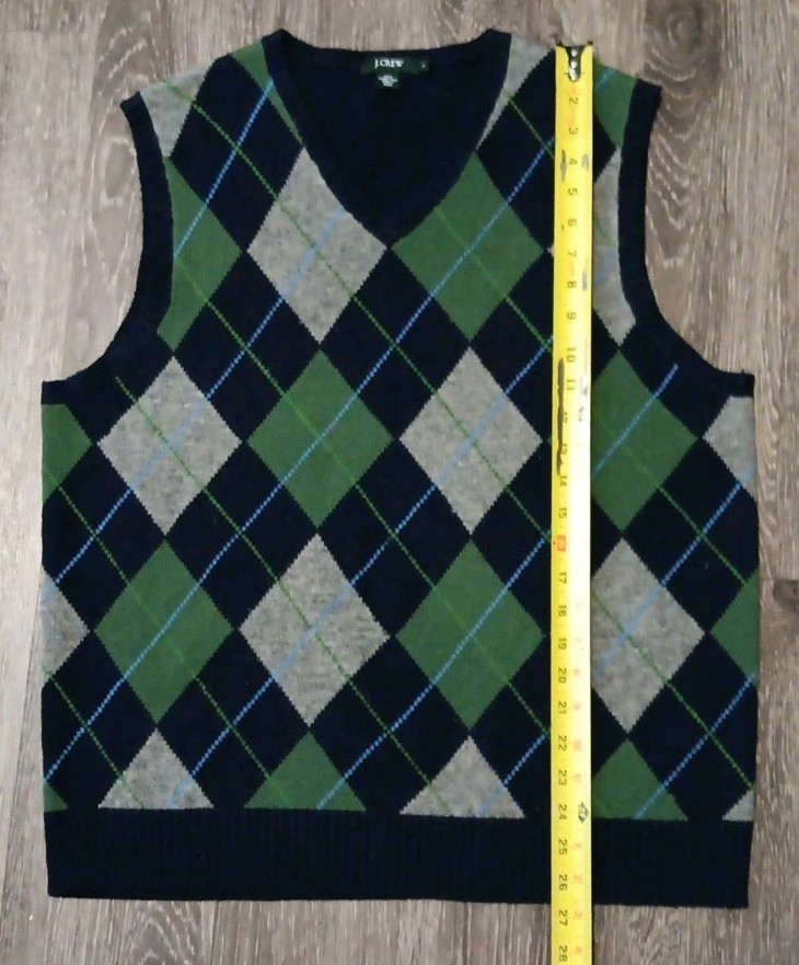 как выглядит J. Crew Lambswool V-Neck Argyle Sweater Vest Mens L фото