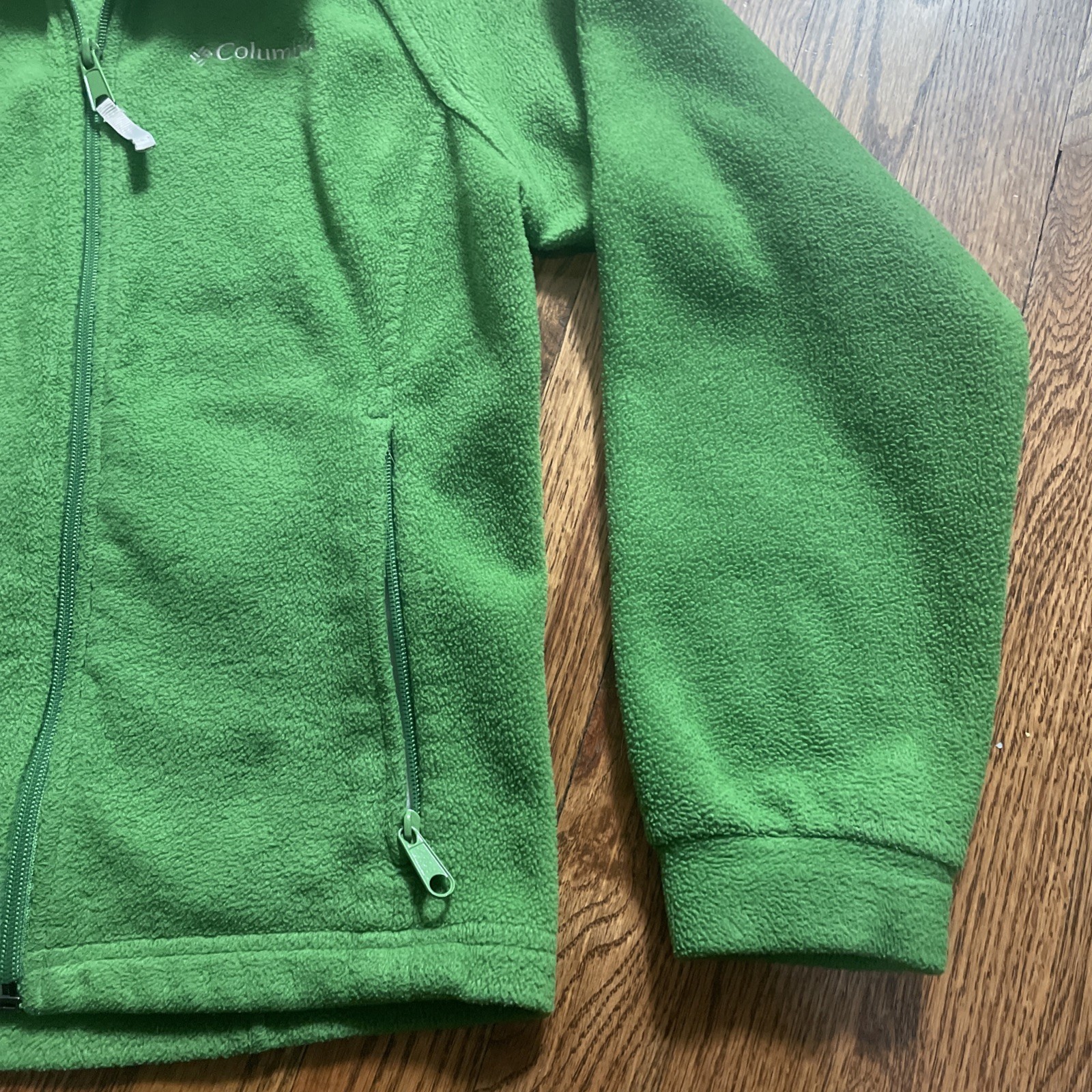 как выглядит COLUMBIA Benton Springs Fleece Jacket Boys 10/12 Green Logo Long Sleeve Full Zip фото