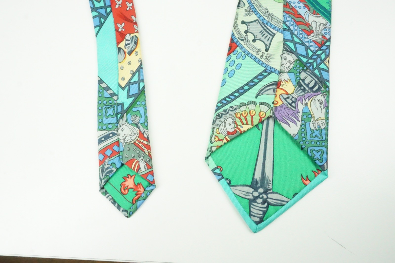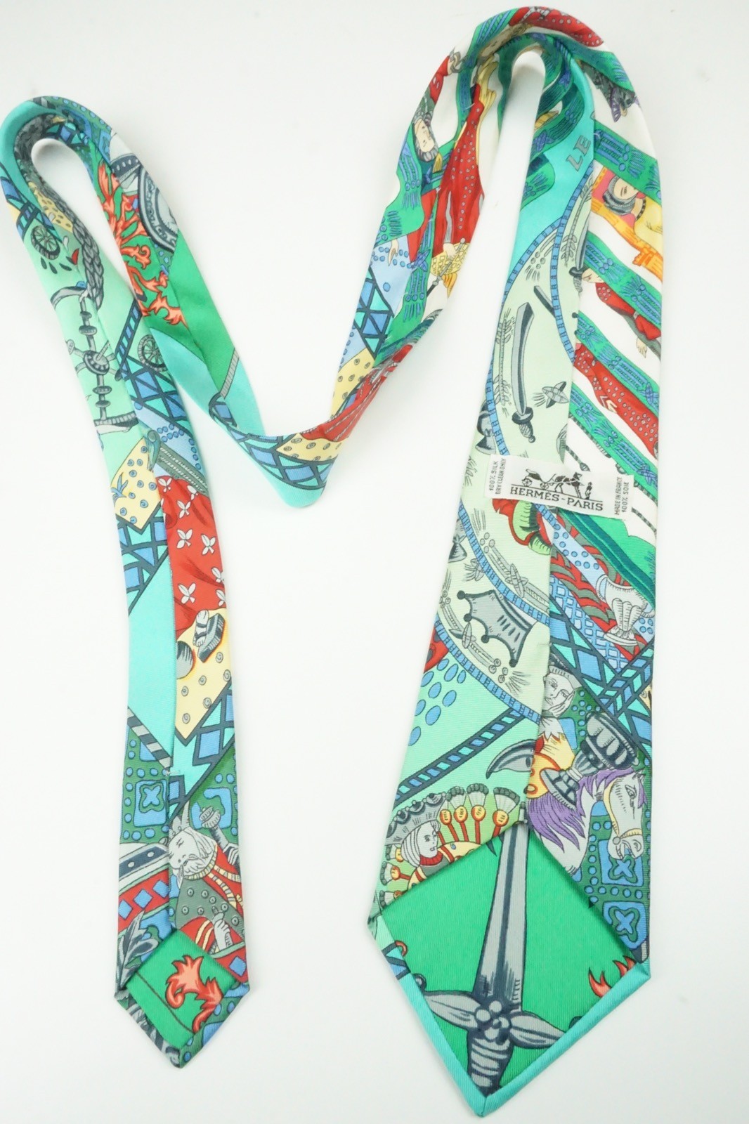 Hermes Bright Multicolor Figure Print Silk Scarf Tie Made in France